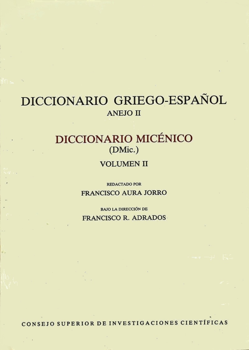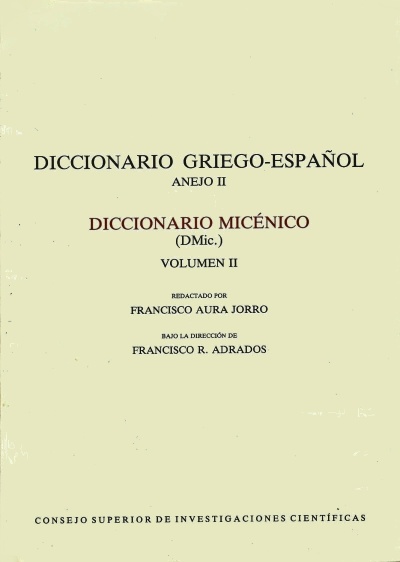 Aura Jorro, Francisco - Diccionario Griego-Español, Anejo I : Diccionario Micénico, Volumen II |