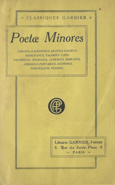 Cabaret-Dupaty, M. [ed.] - Poetae Minores : Sabinus , Calpurnius, Gratius Faliscus , Nemesianus , Valerius Cato , Vestritius Spurinna , Lupercus Servastus , Arborius , Pentadius , Eucheria , Pervigilium Veneris , |
