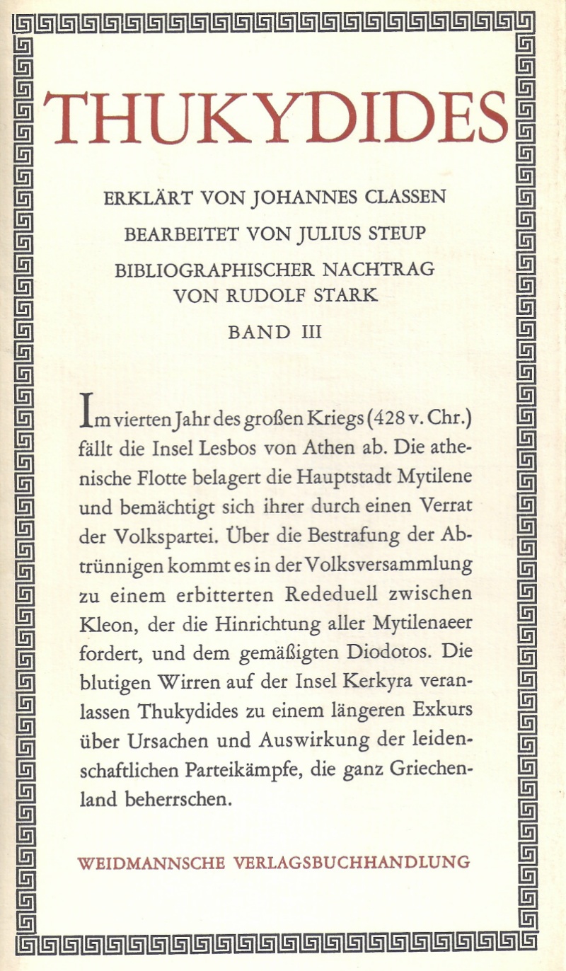 Thucydides {Thukydides} - Thukydides, 3. Band : 3. Buch |