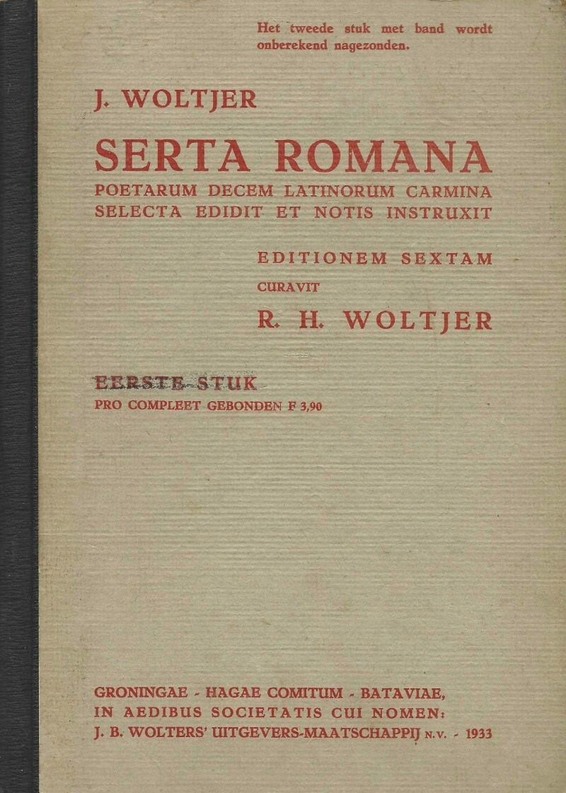 Woltjer, J. - Serta Romana. Poetarum decem Latinorum carmina selecta edidit et notis instruxit , |