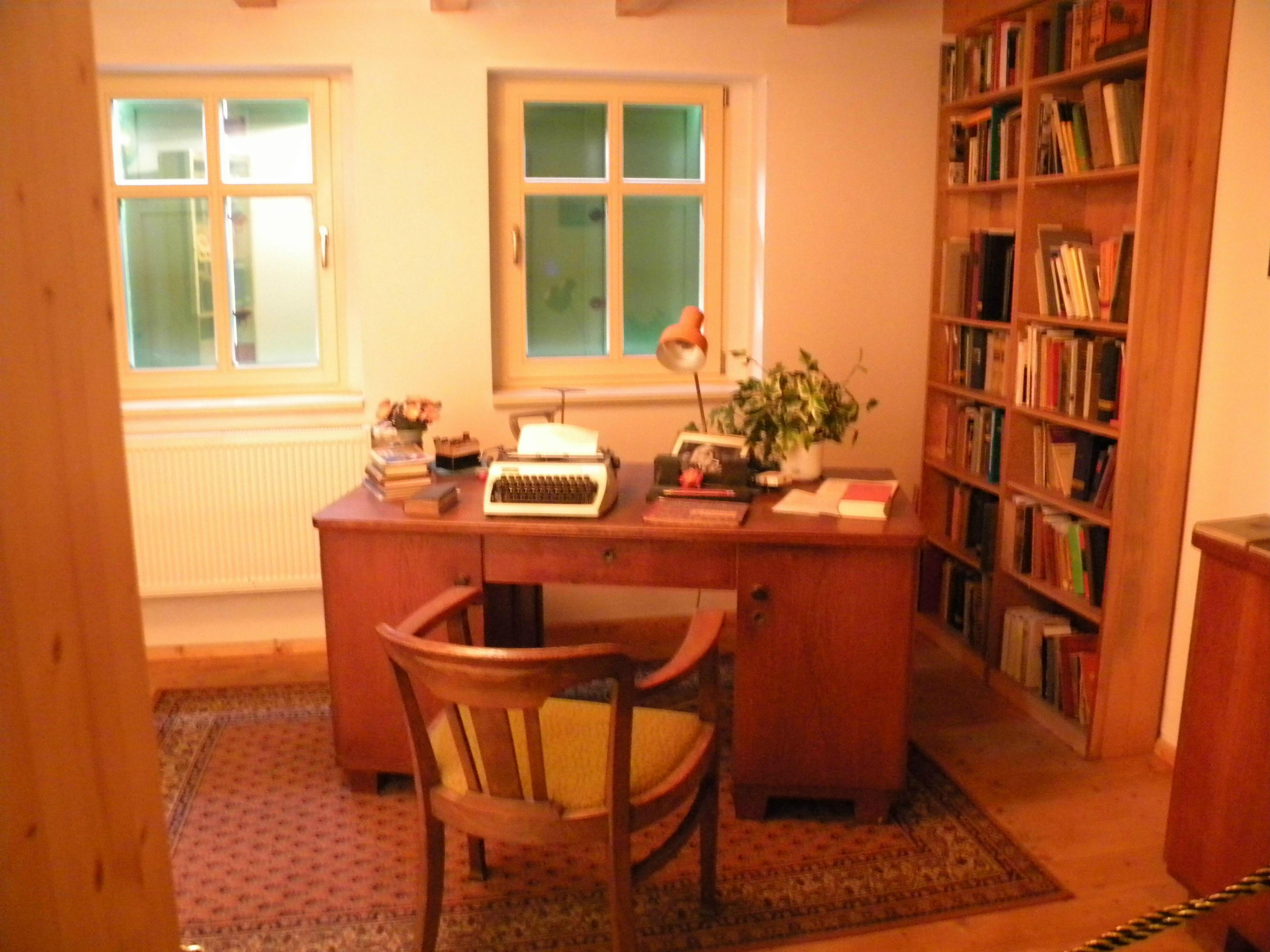 Hohenstein-Ernstthal, Karl-May-Straße 51: Karl-May-Begegnungsstätte: Als mir Heike Graupner, die freundliche Mitarbeiterin des Karl-May-Hauses, zum ersten Mal das Innere der Karl-May-Begrünungsstätte zeigte, war hier das Arbeitszimmer des anderen großen Schriftstellers aus Hohenstein-Ernstthal, Werner Legère (*28. Mai 1912, 14. Oktober 1998), nachgeahmt. © Foto 2010 |