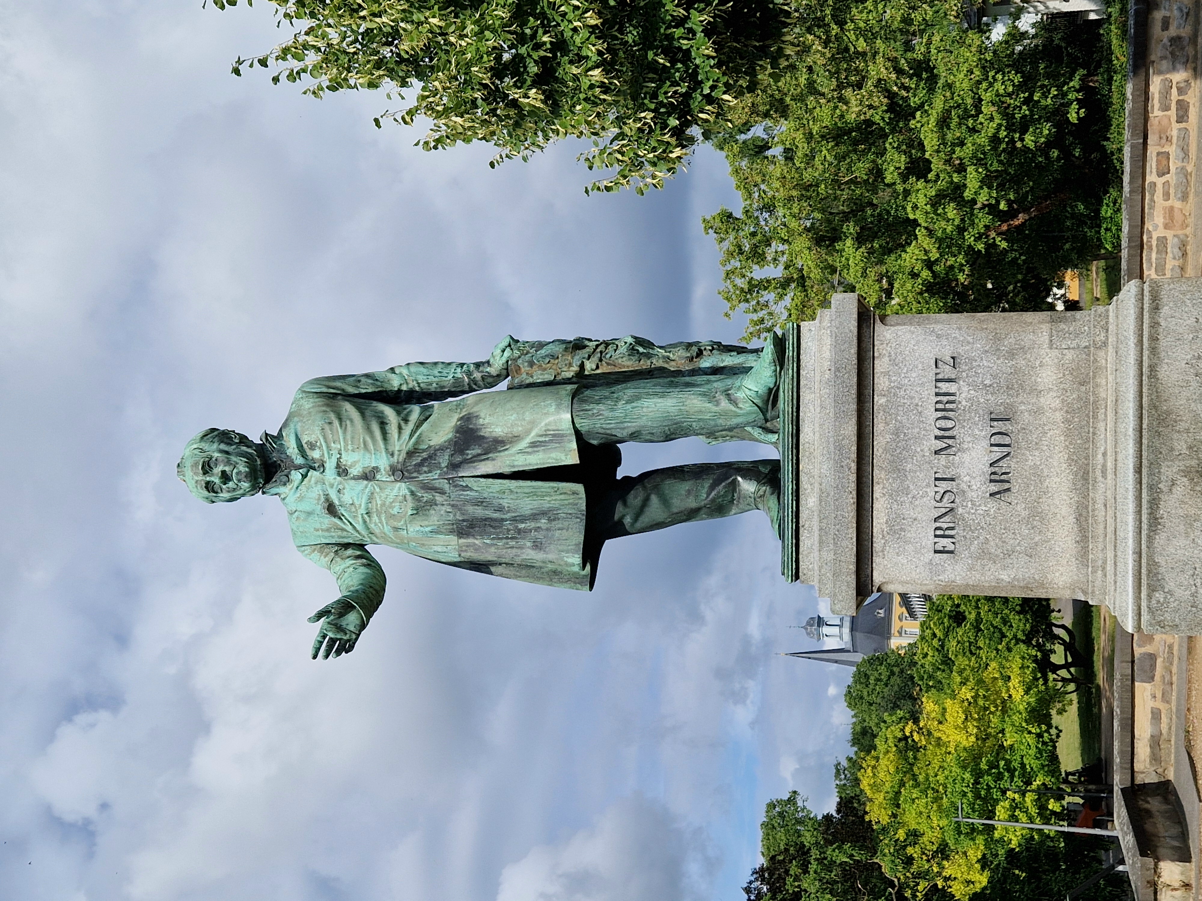 Bonn, Alter Zoll: Im 19. und 20. Jahrhundert genoss Arndt in nahezu allen politischen Strömungen hohes Ansehen: Konservative teilten seinen Monarchismus und seine Abscheu vor revolutionären Umwälzungen, Liberale und Demokraten sahen in Arndt einen Volksfreund und Kämpfer gegen die Leibeigenschaft, Nationalliberale sahen in ihm einen Wegbereiter der deutschen Einheit, und Nationalisten sahen in ihm vor allem einen Franzosenhasser. In der DDR wurden seine kritischen Äußerungen über die Junker und das Bündnis mit Russland positiv aufgenommen. Nach seinem Tod gaben die Bonner Bürger diese Statue in Auftrag, die dem ganzen deutschen Manne gewidmet ist; in diesem lebensgroßen Bild sollte sich das deutsche Volk in all seinen besten Tugenden und edelsten Bestrebungen wiederfinden. Wie anders ist dies im 21. Jahrhundert, wo der woke Wahnsinn zugeschlagen hat und nichts, was uns einst heilig war, bleiben darf! 😡 © Foto 2025 |