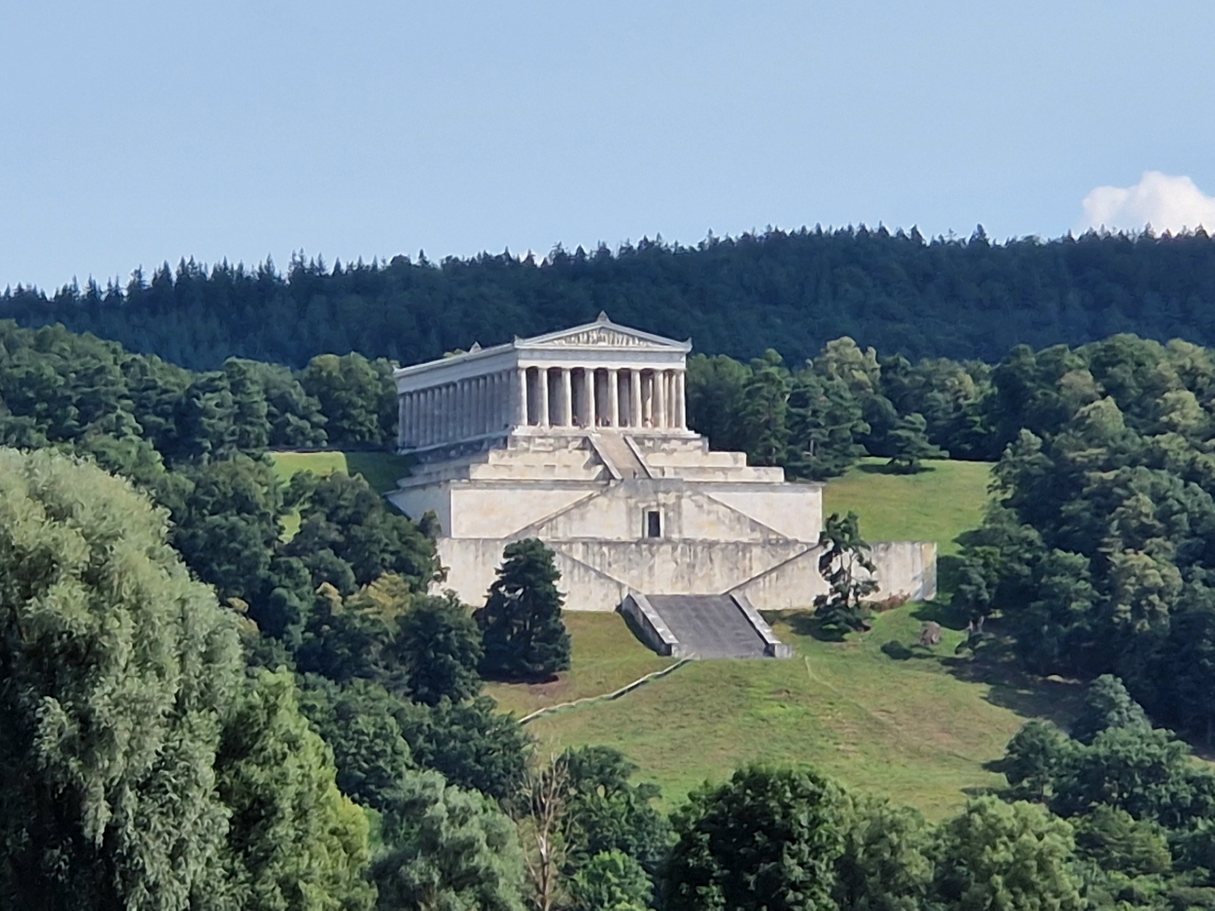 Donaustauf: Donaustauf: Etwas außerhalb von Donaustauf, auf dem Bräuberg, 126 über der Donau, hatte ließ Ludwig I. (* 25. August 1786, 29. Februar 1868; König von Bayern vom 13. Oktober 1825 bis 20. März 1848) den Architekten Leo von Klenze (vollständig: Franz Karl Leopold Klenze, ab 1822 von Klenze, * 29. Februar 1784, 27 januari 1864) die Walhalla erbauen, einen Tempel, der die Büsten der fünfzig größten Deutschen aus Vergangenheit und Gegenwart behrbergen sollte. Dazu war Ludwig schon als Kronprinz 1807 begonnen, Büsten berühmter Deutscher zu sammeln, die Walhalla wurde jedoch erst zwischen 1831 und 1842 erbaut; die offizielle Eröffnung fand am 18. Oktober 1842, auf den Tag genau 29 Jahre nach der Völkerschlacht bei Leipzig, statt. © Foto 2024 |
