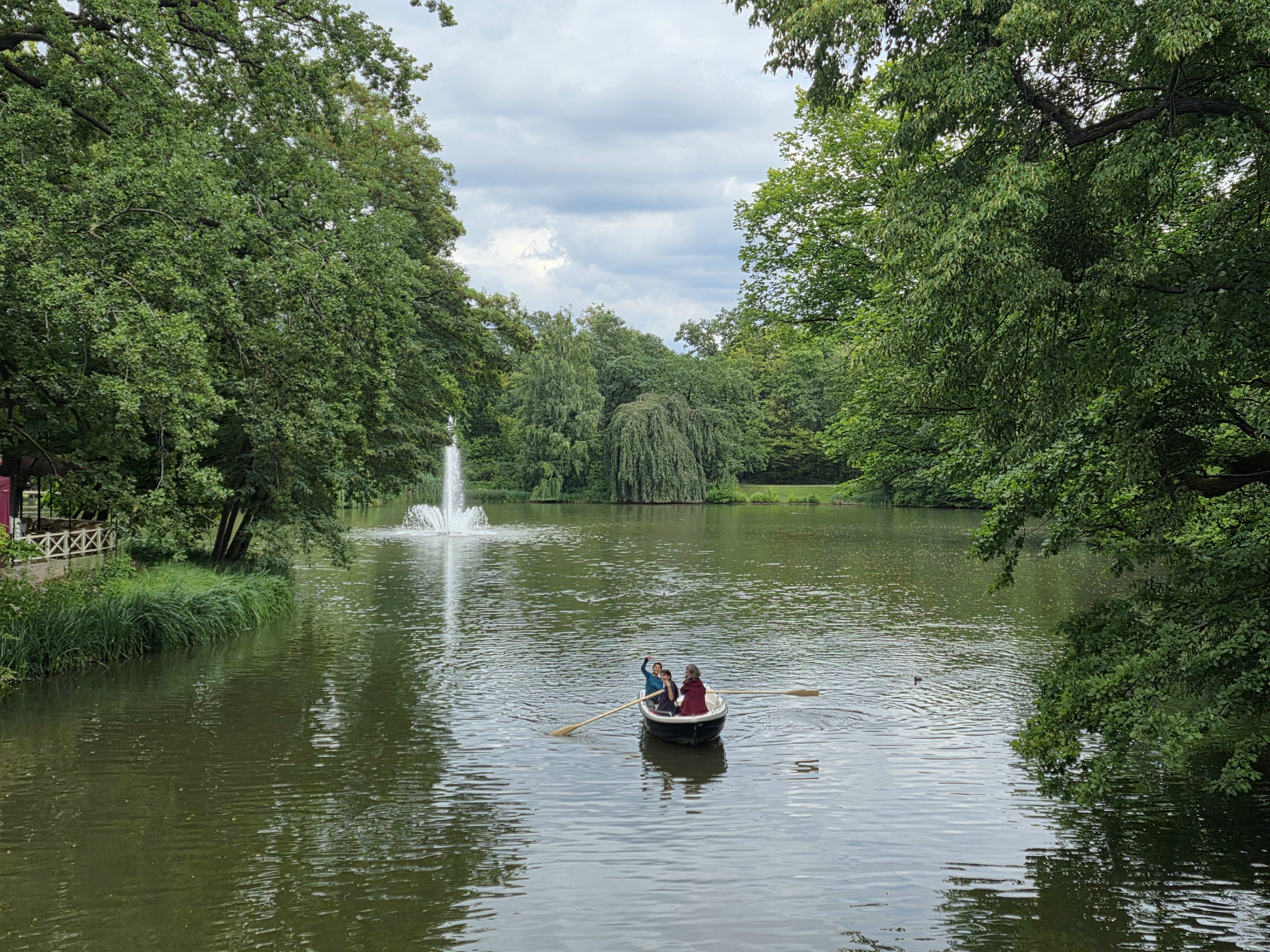 Dresden, Großer Garten: Carolasee: Der Carolasee entstand schon vor dem Neuen Teich. Seit dem Siebenjährigen Krieg (1756–1763) wurde im südöstlichen Teil des Großen Gartens Kies abgebaut, zunächst von den einfallenden Preußen, später von den Sachsen selbst. Der Direktor des Großen Gartens, Friedrich Bouché (vollständig: Johann Carl Friedrich Bouché, * 6. Juli 1850, 11. März 1933), erhielt 1874 die Erlaubnis, das entstandene Loch in einen Teich umzuwandeln. So entstand von November 1881 bis November 1882 der 28.000 m² große Carolasee. Der Teich wurde nach der letzten Königin von Sachsen, Carola (volltändig: Caroline Friederike Franziska Stephanie Amelie Cäcilie Prinzessin von Wasa-Holstein-Gottorp, * 5. August 1833, 15. Dezember 1907; Ehefrau von König Albert I. (* 23. April 1828, 19. Juni 1902; König von Sachsen von 1873 bis 1902)) benannt. © Foto 2025 |
