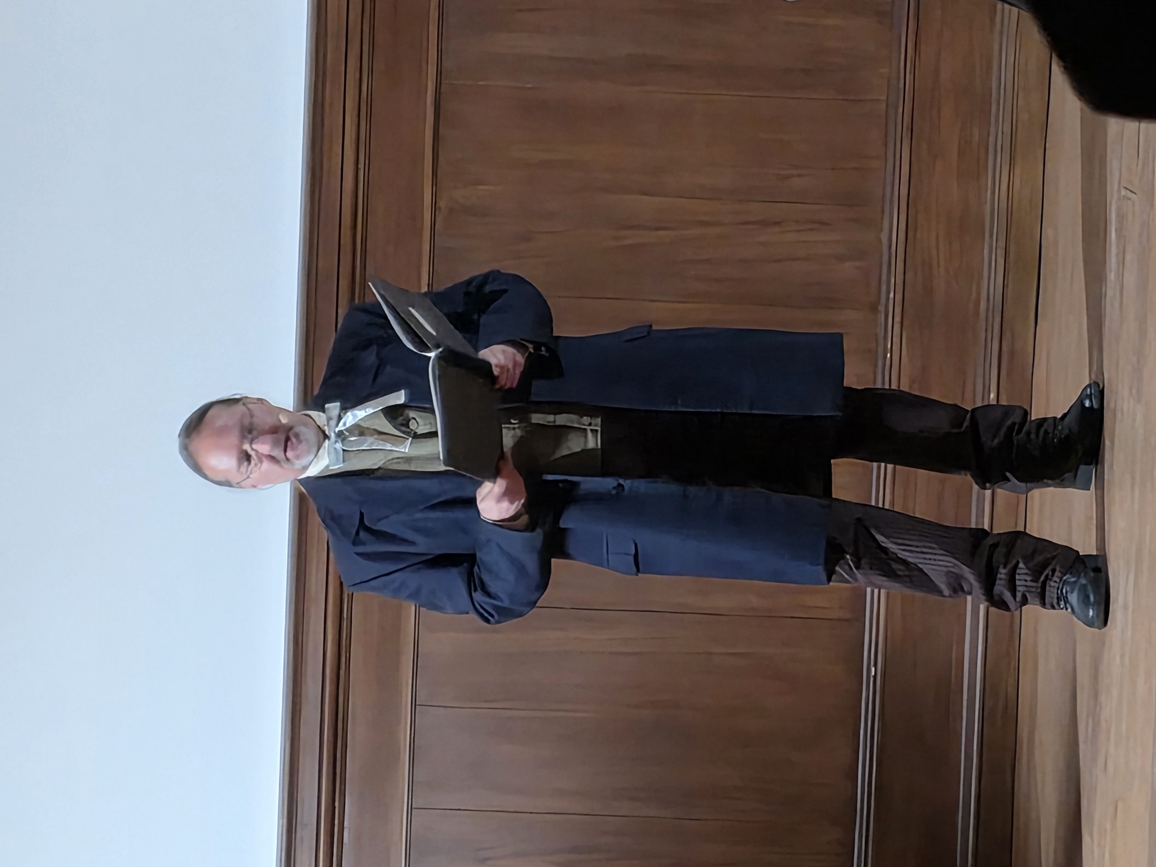 Rostock, Universitätsplatz 1: Universität Rostock: Das Abendprogramm des ersten Kongresstages (2. Oktober 2025) gestalteten Robby Langer (* 1961) und Roland Wichmann (* 1968), die ein Theaterstück basierend auf dem Briefwechsel zwischen Karl May und Sascha Schneider (vollständig: Rudolph Karl Alexander Schneider, * 21. September 1870, 18. August 1927) inszenierten. Hier sieht man Roland Wichmann in der Rolle des Sascha Schneider. © Foto 2025 |