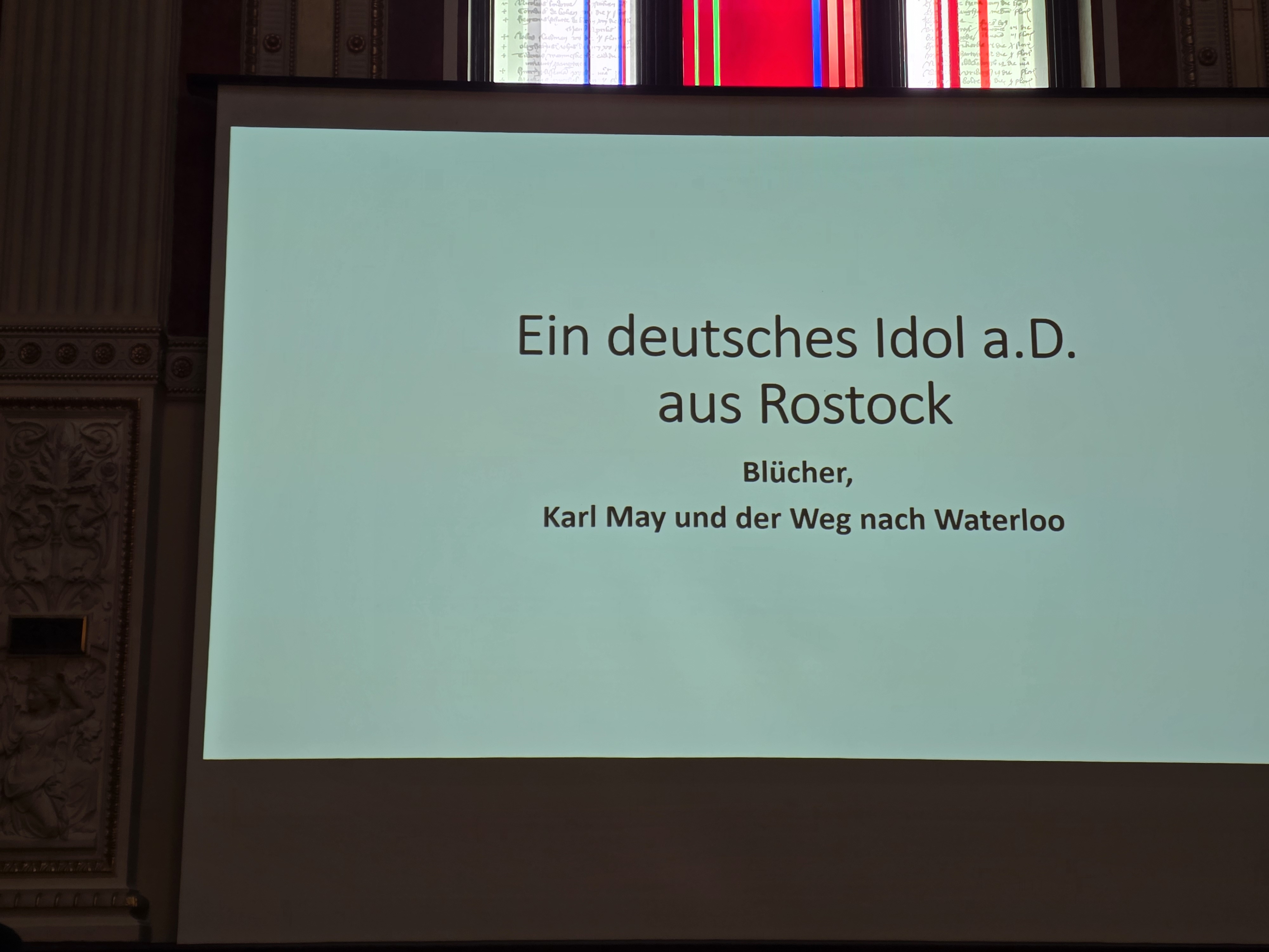 Rostock, Universitätsplatz 1: Universität Rostock: Der Sonntag war leider schon der letzte Tag des 29. Kongresses der Karl-May-Gesellschaft. An diesem Tag fanden noch zwei weitere Vorträge statt; den ersten hielt Malte Ristau (* 1962; Sozialwissenschaftler und Leiter a.D. der Grundsatzabteilung im Bundesministerium für Arbeit und Soziales), der über Rostocks berühmtesten Sohn sprach, der auch mehrfach als dramatis persona in den Werken von Karl May auftritt: Feldmarschall Gebhard Leberecht von Blücher (Spitzname Marschall Vorwärts, seit 1814 Fürst Blücher von Wahlstatt, * 16. Dezember 1742, 12. September 1819). © Foto 2025 |