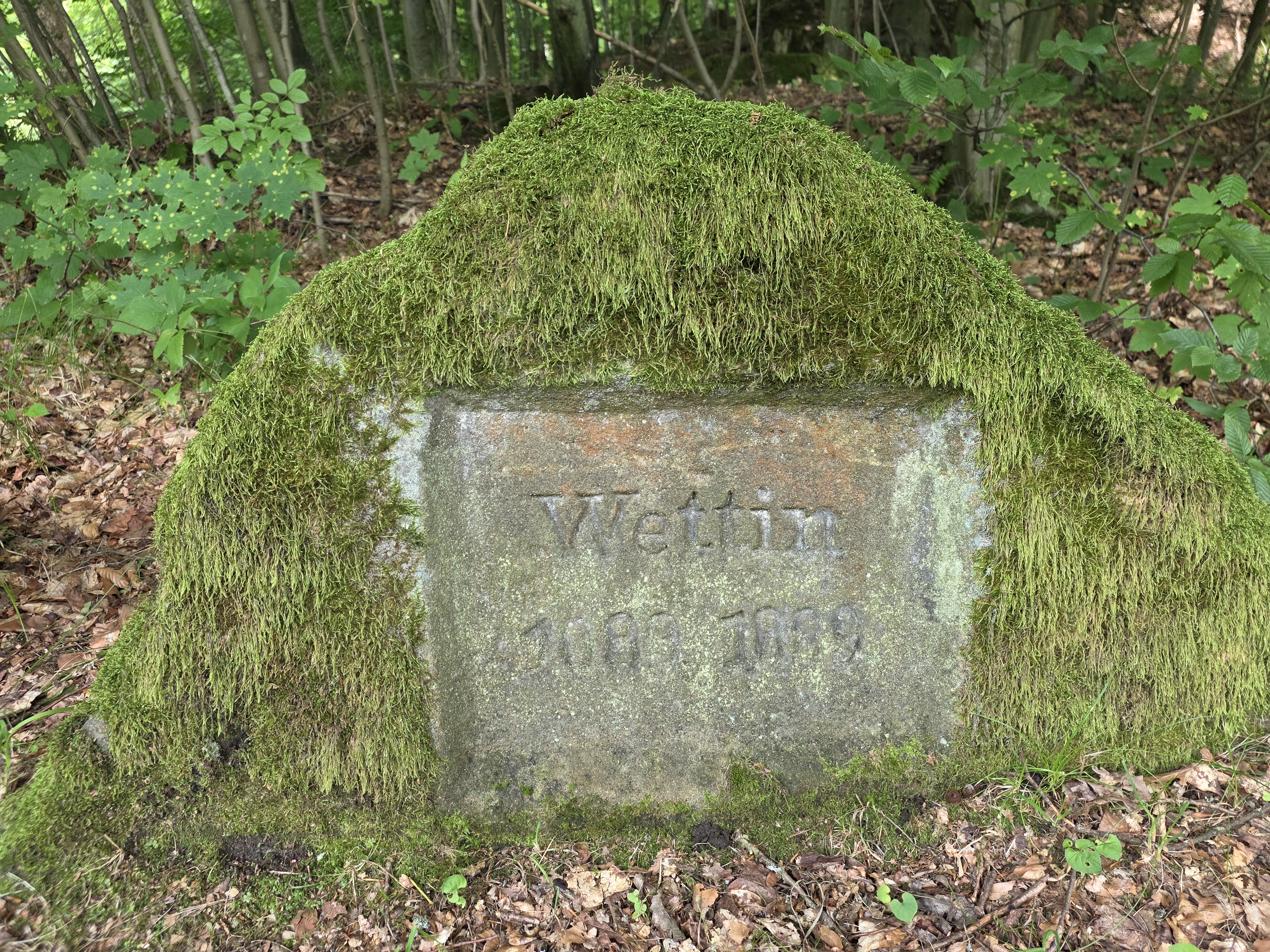 Sebnitz, Saupsdorfer Weg: Im Jahr 1089 wurde Markgraf Heinrich I. (* ± 1070, 1103) von Kaiser Heinrich IV. (* 11. November 1050, 7. August 1106; ab 1056 römisch-deutscher König und von 1084 bis 31. Dezember 1105 Kaiser des Heiligen Römischen Reiches) mit der Markgrafschaft Meißen belehnt. Dies markierte den Beginn des Landes Sachsen. 800 Jahre später, im Jahr 1889, war Albrecht (vollständig: Friedrich August Albrecht Anton Ferdinand Joseph Karl Maria Baptist Nepomuk Wilhelm Xaver Georg Fidelis von Sachsen, * 23. April 1828, 19. Juni 1902; König von Sachsen von 1873 bis 1902) König. Daher trugen oder tragen die meisten Wettinsteine die Buchstaben H und A. Das könnte auf diesem Stein auch der Fall gewesen sein, aber wie man sieht, ist er ziemlich überwuchert. Klara May schreibt ehrlich, dass die Routenbeschreibung dieser Tour auf einigen verstreuten Notizen beruht, daher überrascht uns die eher ungewöhnliche Route, die die Vierergruppe während der Basteireise 1903 anscheinend genommen hat, nicht mehr. © Foto 2025 |
