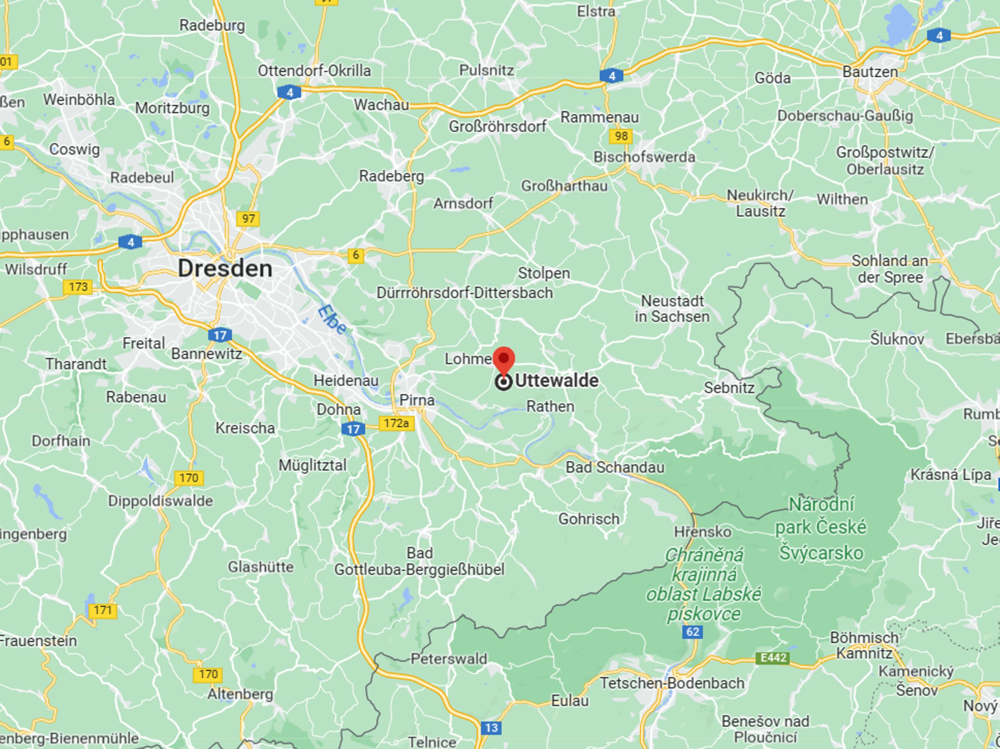 Uttewalde: ![]() Uttewalde ist seit dem 1. August 1961 ein Ortsteil der Gemeinde Lohmen. Das Dorf, das nie eine eigene Kirche hatte, liegt etwa drei Kilometer südöstlich von Lohmen in der Sächsischen Schweiz. Es liegt etwa 250 Meter über Normalhöhennull am Rande einer Hochfläche westlich des Uttewalder Grundes, einer bei Wanderern sehr beliebten Schlucht. Uttewalde wurde wahrscheinlich im 14. Jahrhundert im Zuge der deutschen Osterweiterung gegründet; die erste urkundliche Erwähnung erfolgt im Jahr 1400 als Ottenbalde, was auf einen gewissen Otto als Gründer hinweisen könnte. Die Haupteinnahmequelle ist natürlich die Landwirtschaft. Zum 31. Dezember 2023 lebten ganze 92 Menschen im Dorf; Im Jahr 1950 waren es noch 201. |