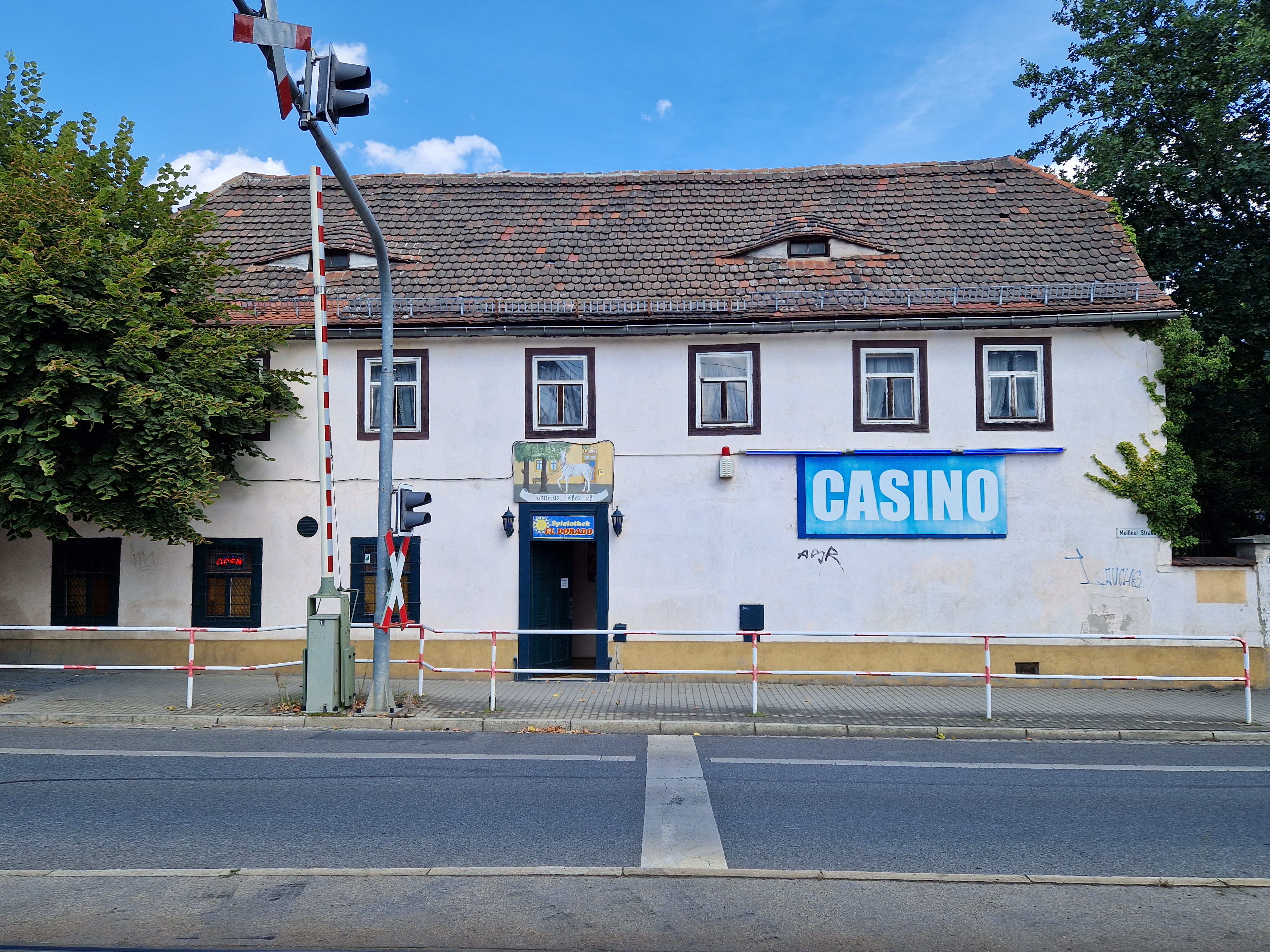 Radebeul, Meißner Straße 148: Dass Karl und Emma May gelegentlich im Gasthaus Weißes Roß speisten, geht aus einer Bemerkung des Studenten Max Welte (* 25. Juli 1877, 3. Dezember 1934) hervor, der die Villa Shatterhand zu Ostern 1897 besuchte: Wir aßen im Weißen Roß, weil Karl May ein viel zu sanftmütiger Ehemann ist, um seine Frau stundenlang in der Küche stehen zu lassen. © Foto 2022 |