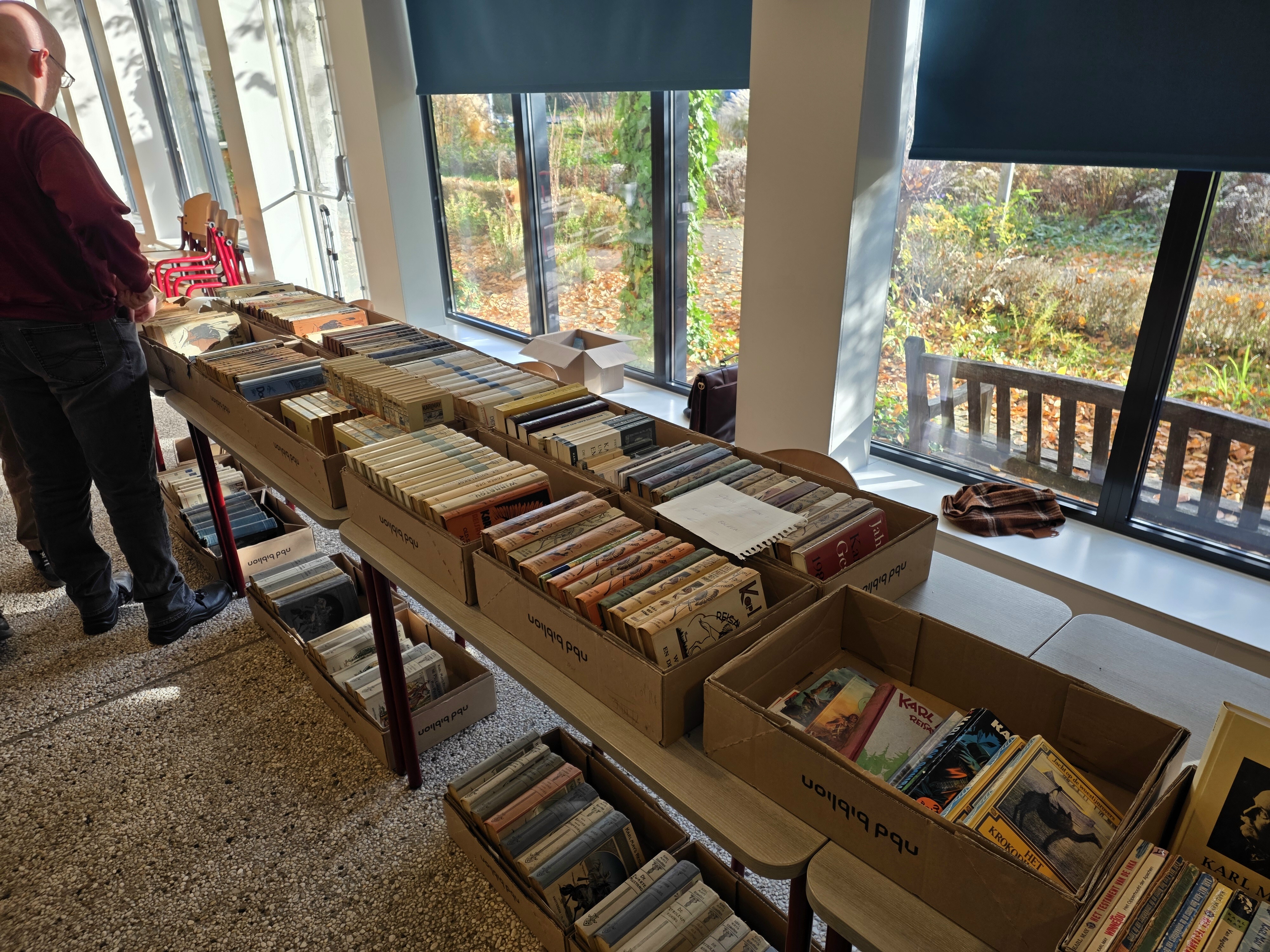 Amersfoort, Vogelplein 1: De Bron: Het aantrekkelijkste onderdeel is voor velen natuurlijk het ruime aanbod van Nederlandstalige Karl May-boeken, maar door een schenking is de Karl-May-Vereniging ditmaal ook in het bezit gekomen van enkele kisten vol Bamberger-uitgaven die men kan kopen. © foto 2025 |
