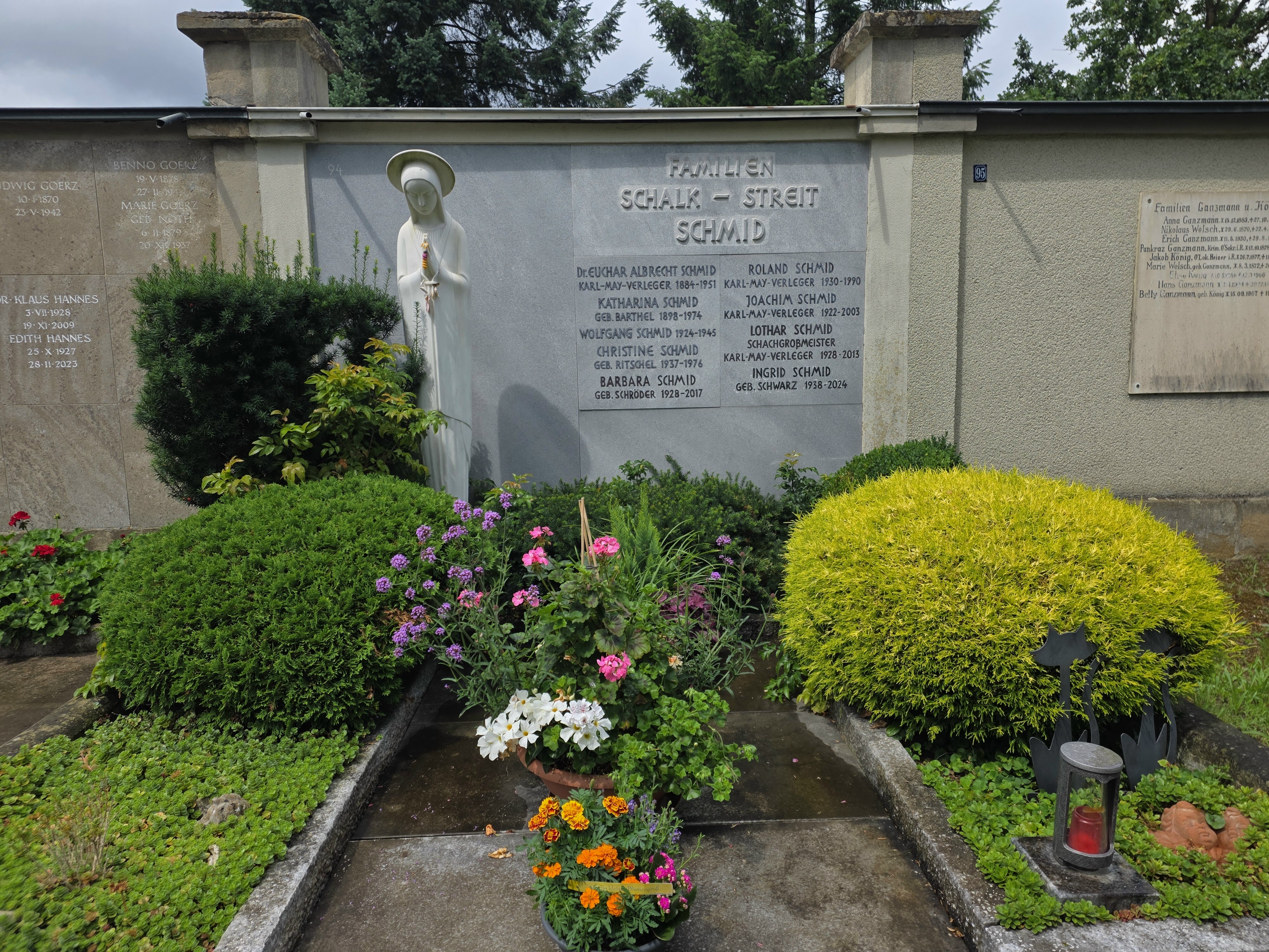 Uw webmaster, geboren en getogen in bloemenland Nederland, laat in Duitsland een spoor van bloemen en planten achter op graven van mensen die in hun leven met Karl May te maken hadden 🌷