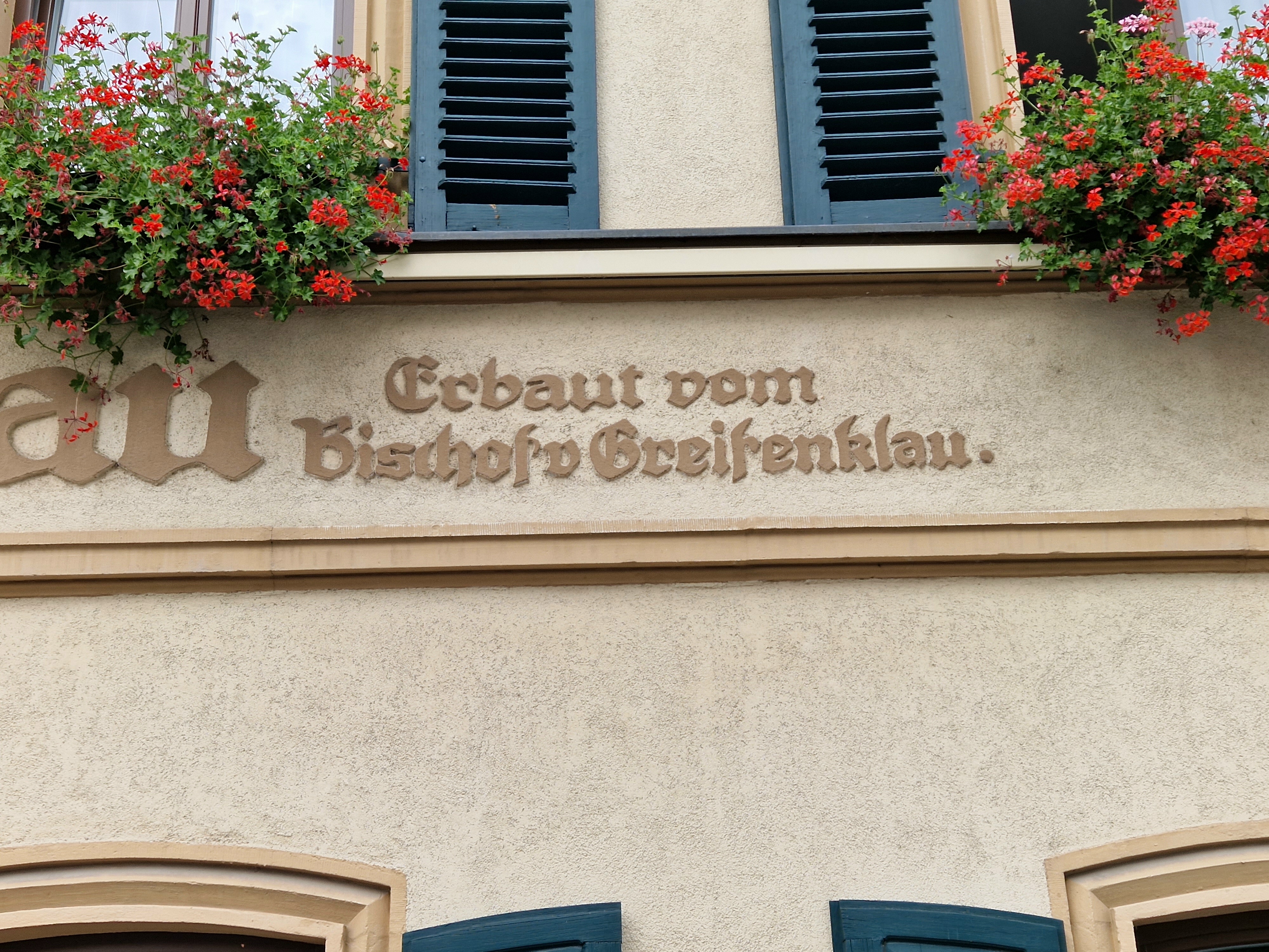 Bamberg, Laurenziplatz 20: De brouwerij is niet genoemd naar de oprichter/eigenaar, maar naar prins-bisschop Freiherr Johann Philipp von Greiffenclau zu Vollraths (* 13 februari 1652, 3 augustus 1719; van 9 februari 1699 tot 3 augustus 1719 als Johann Philipp II. prins-biscchop van Würzburg en zodoende ook hertog in Franken). Dat de prins-bisschop nog voor de voltooiing stierf, hoeft ons niet te verbazen: in die tijd werd er nog degelijk gebouwd en dat had nou eenmaal zijn tijd nodig. © foto 2022 |