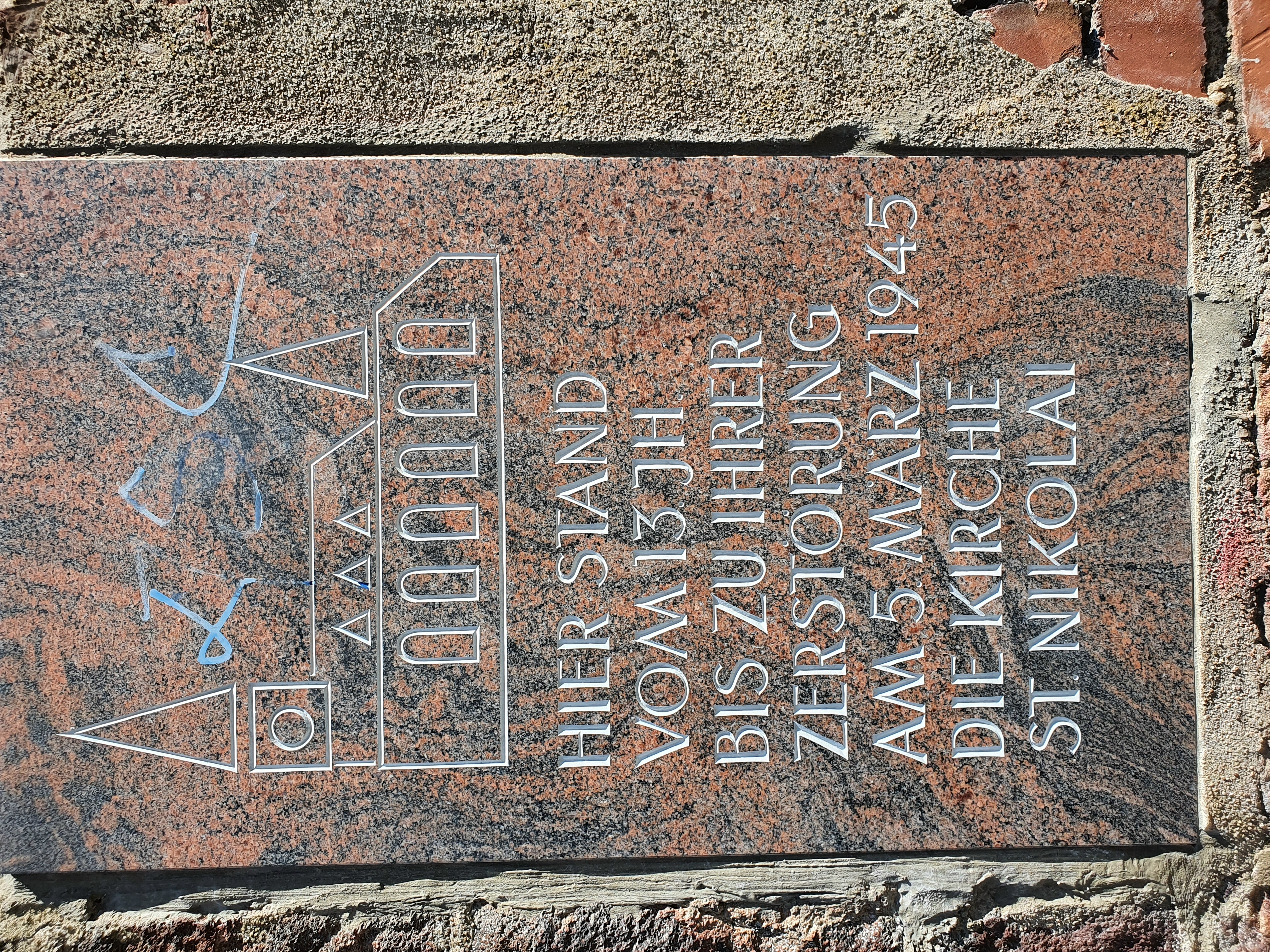 Chemnitz, Schadestraße: Naast de voormalige Nicolaikirche ✞ stond de pastorie, waarin Robert Kohl (* 14 december 1813 , 31 december 1881) naast zijn werk als dominee van deze kerk ook de rol van schoolinspecteur van de Ephorie - kerkdistrict in het koninkrijk Saksen - Chemnitz op zich had genomen. In deze pastorie maakte de jonge Karl May op 26 oktober 1861 zijn opwachting voor een sollicitatiegesprek met Kohl voor een baantje op de twee genoemde fabrieksscholen. De kerk werd in 1884 gesloopt en van 1886 tot 1888 vervangen door een nieuwbouw. Deze zou blijven staan tot geallieerde bommen op 5 maart 1945 een einde maakten aan het bestaan van deze kerk. Een plaquette is alles wat nog aan deze Nicolaikirche herinnert. © foto 2021 |