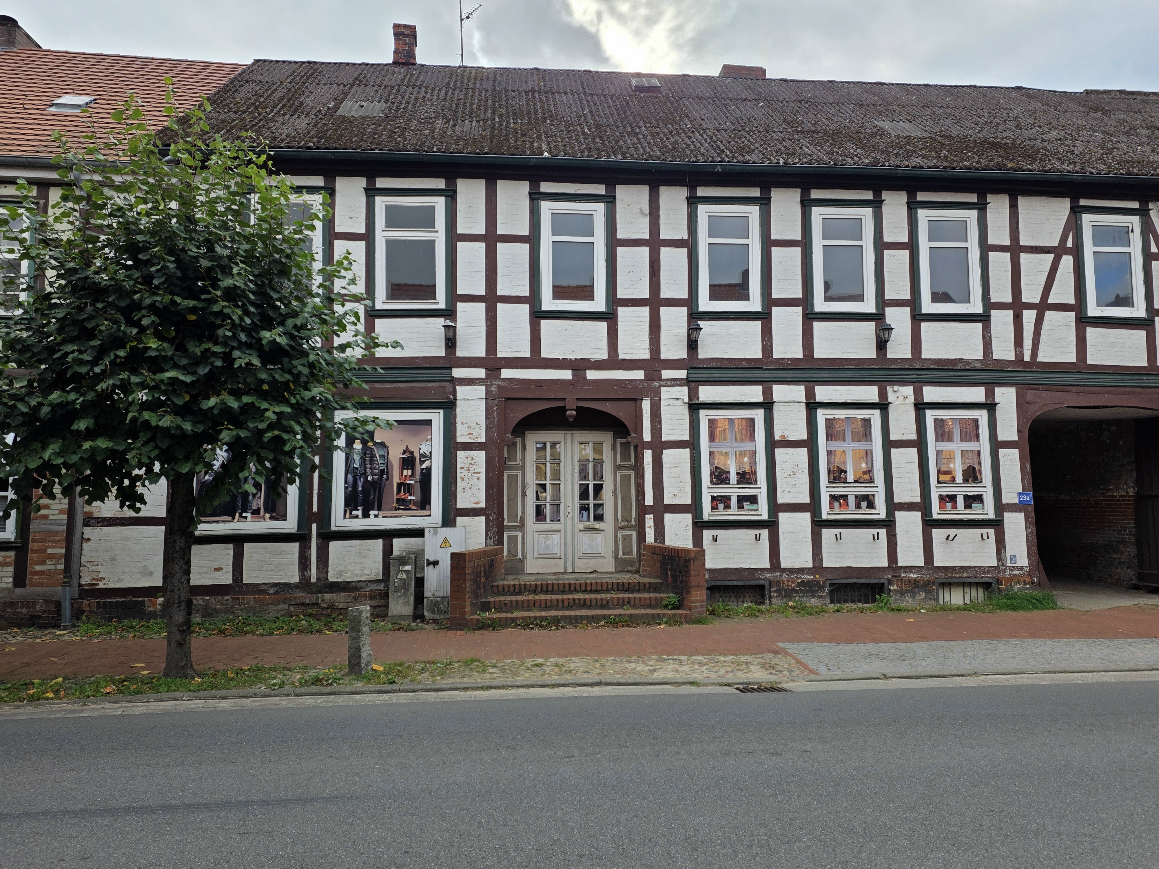 Gartow, Hauptstraße 23 (23a): In 1898 bevond zich in dit pand het zogeheten Deutsches Haus, een hotel met zalencomplex. Karl May had tijdens zijn korte verblijf in Gartow al snel een schare bewonderaars - de stamtafelgroep die Börse - om zich heen verzameld, van wie onderwijzer en zangleraar Friedrich Hinnrichs (* 1873, 1955), grafelijke boswachter Carl Eduard Wilhelm Junack (* 15 november 1870, 1943) en de arts Dr. med. Ernst Röhrs (* 19 november 1868, 22 juni 1934) - in 1898 25, 28 resp. 30 jaar oud - de belangrijksten waren. Ook burgemeester Adolf Bardien (* 1847, 1935), houtzaagmolenaar August Herbst (* 1870, 1951) en Mays hotelbaas Wilhelm Konrad Johannes Heinrich Krug (* 1859, † 30 november 1939) behoorden tot die Börse. Karl May onderhield deze en andere bewonderaars afwisselend in Hotel Krug en het Deutsches Haus. Een zekere Adolf Krüger was eigenaar van dat laatste hotel. © foto 2025 |