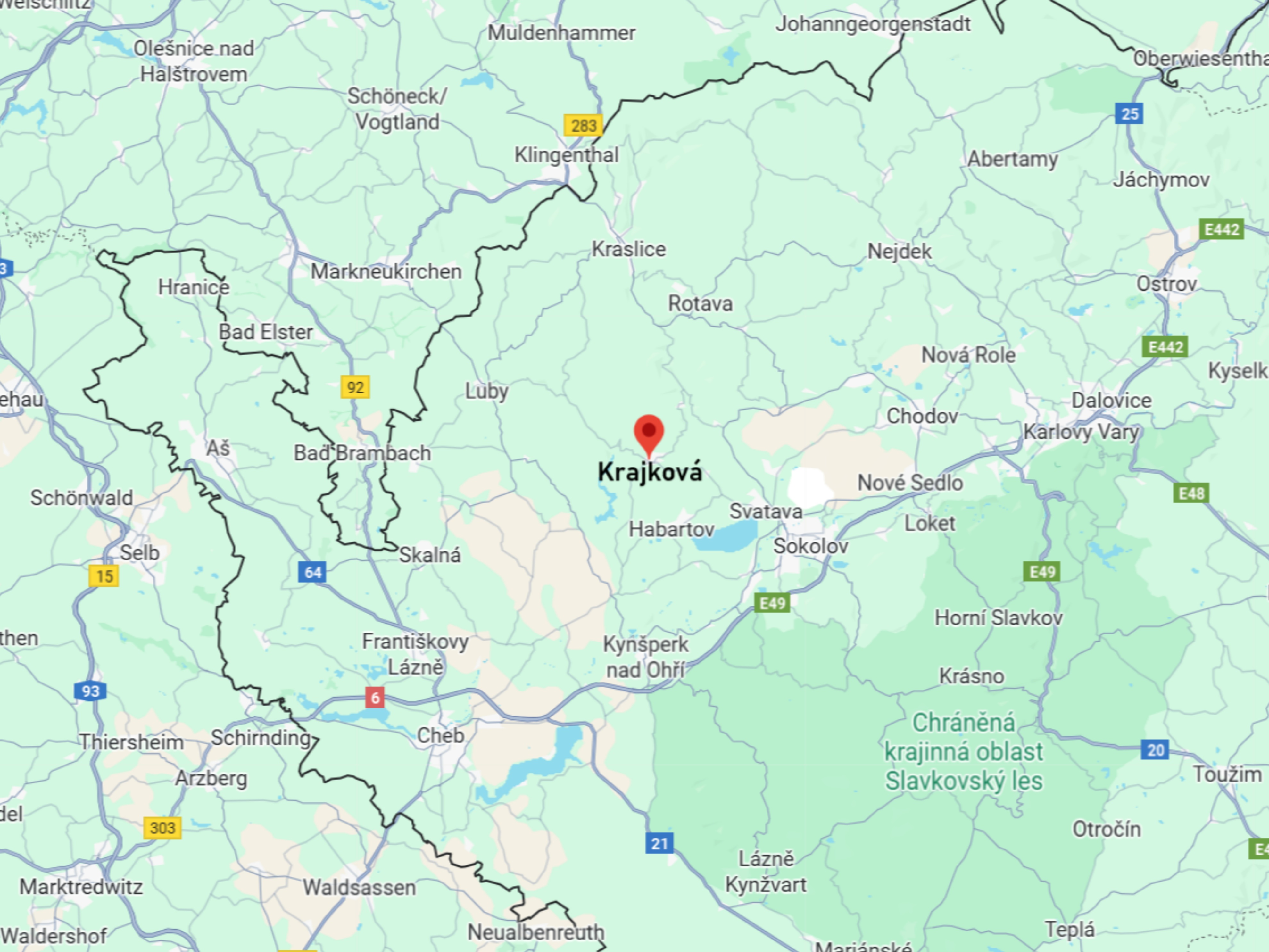 Gossengrün (Krajková): ![]() Gossengrün wordt voor het eerst in 1350 vermeld; in 1460 kreeg Wenzel Schlick von Passaun und Weißkirchen de heerschappij en in 1484 kreeg Gossengrün stadsrechten, het markt- en brouwrecht en een vergunning om bier te verkopen. In de zestiende eeuw werd het mijnkantoor naar Bleisadt (Oloví) verplaatst; rond Gossengrün werd toen al lood en zilver gedolven. De mijnbouw kreeg echter een knauw door de Dertigjarige Oorlog (1618 - 1648). In 1807 werd het stadje door een brand in de as gelegd. In de 19e eeuw onderhielden 300 van de ongeveer 1500 inwoners zich met kantklossen. Na het einde van de Eerste Wereldoorlog kwam Gosssengrün bij Tsjechoslowakije, maar het stadje werd vooral door Duitstaligen bewoond, zoals elk dorp en elke stad in deze regio. In 1945 werden deze Sudetenduitsers verdreven, waardoor bijna het hele stadje ontvolkt werd. Zoals in de meeste dorpen en steden in de buurt dwong de Tsjechoslowaakse regering Tsjechen, Slowaken en zigeuners om de leegstaande huizen te bewonen. In 1948 kreeg Gossengrün officieel de naam Krajková. Het stadje telde op 31 december 2024 911 inwoners, ongeveer de helft van het aantal in 1939; het oppervlak is 35,23 km². |