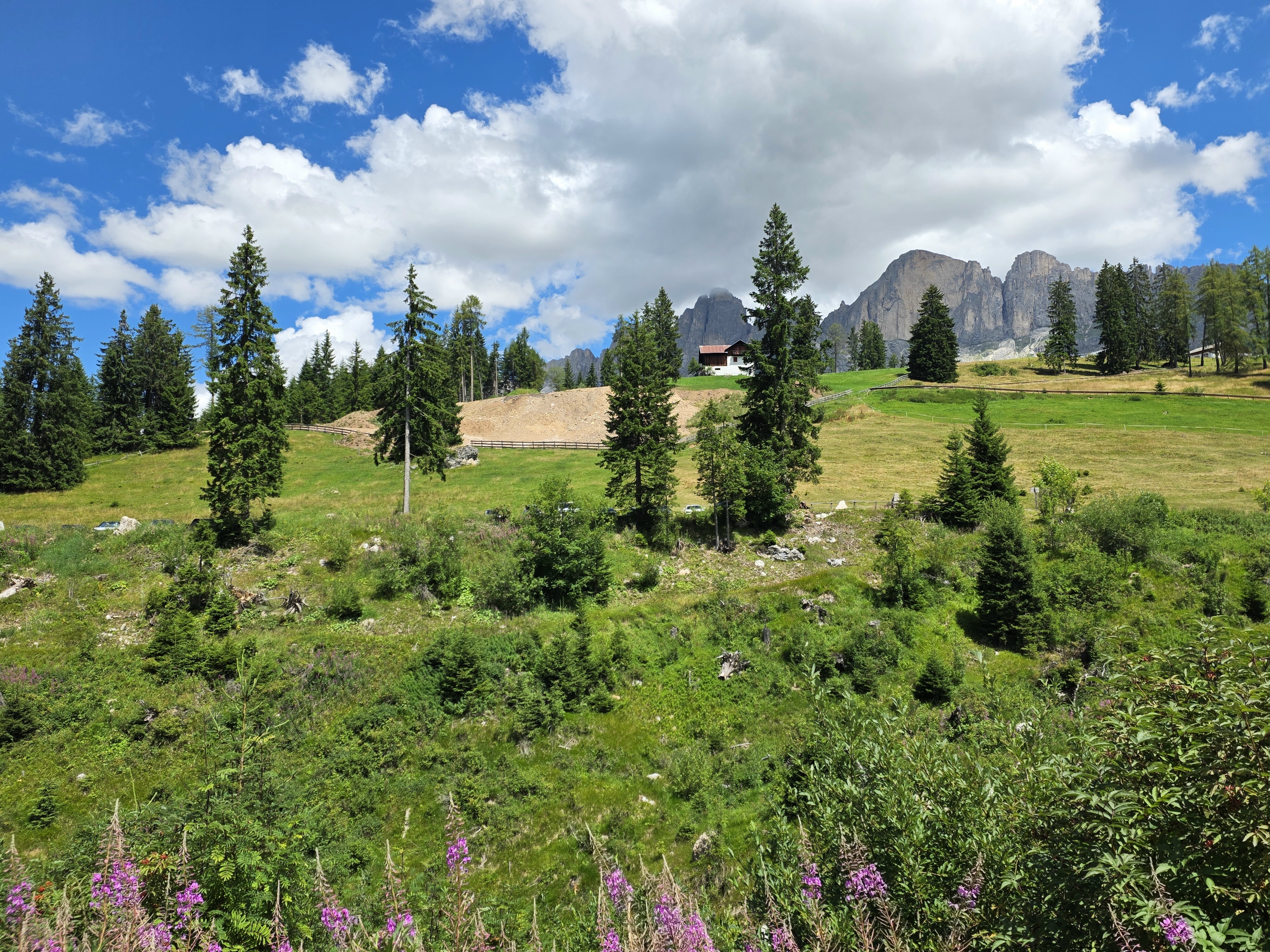 Een laatste blik op het dorp Karersee (Carezza al Lago) en een deel van de