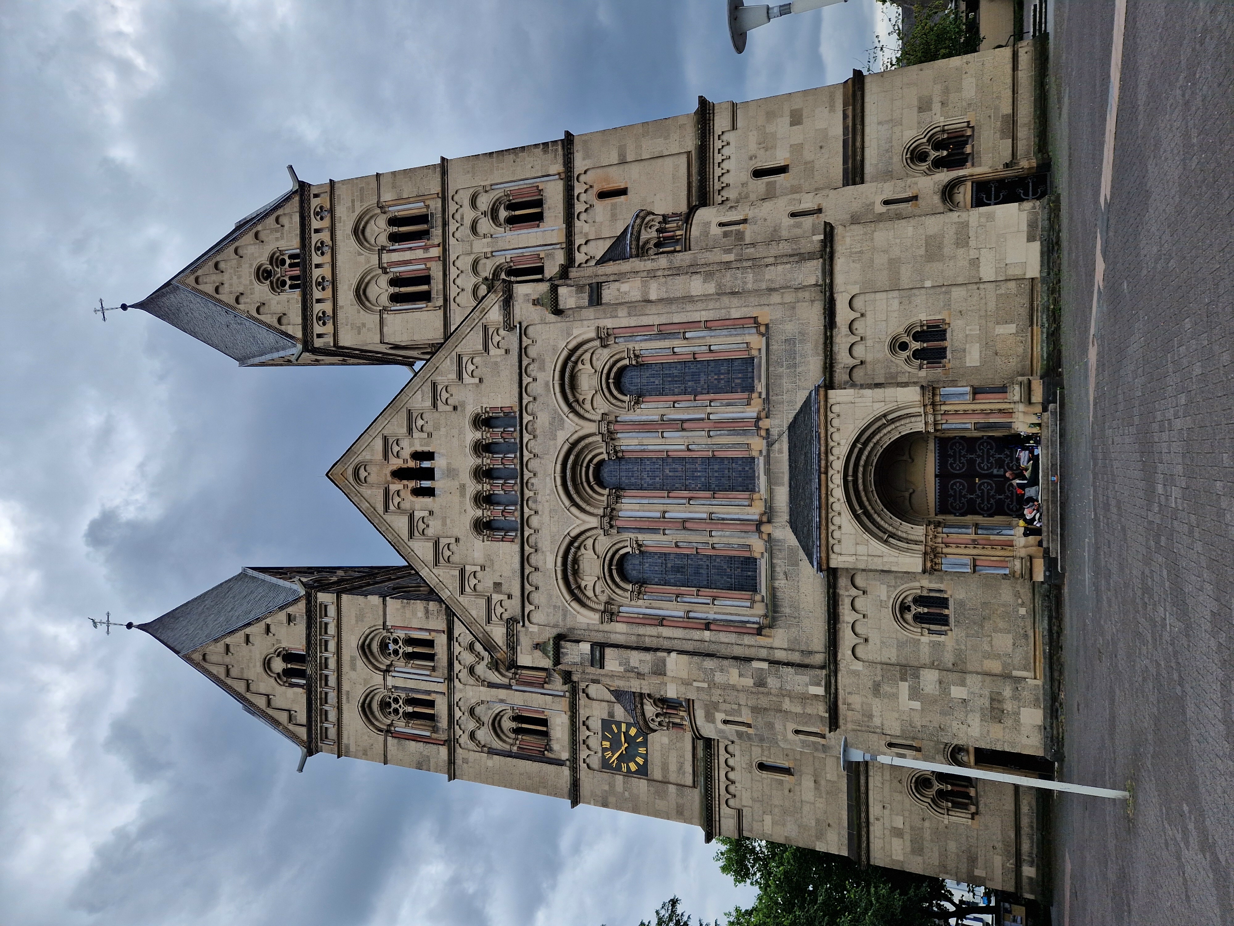 Koblenz, Löhrrondell: Zoals gezegd werd het Löhrrondell bij een bombardement in 1944 vernietigd; alleen de Herz-Jesu-Kirche ✞ die tegenover Hotel Monopol stond, werd herbouwd. De neoromaanse kerk werd tussen 1900 en 1903 gebouwd. Het Löhrrondell, ooit onderdeel van de stadsomwalling, werd tot de jaren 80 als parkeerterrein gebruikt, maar daarna vond nieuwbouw plaats, die - afgezien van de herbouwde kerk - de harten van de architectuurfans niet sneller laat staan. © foto 2025 |