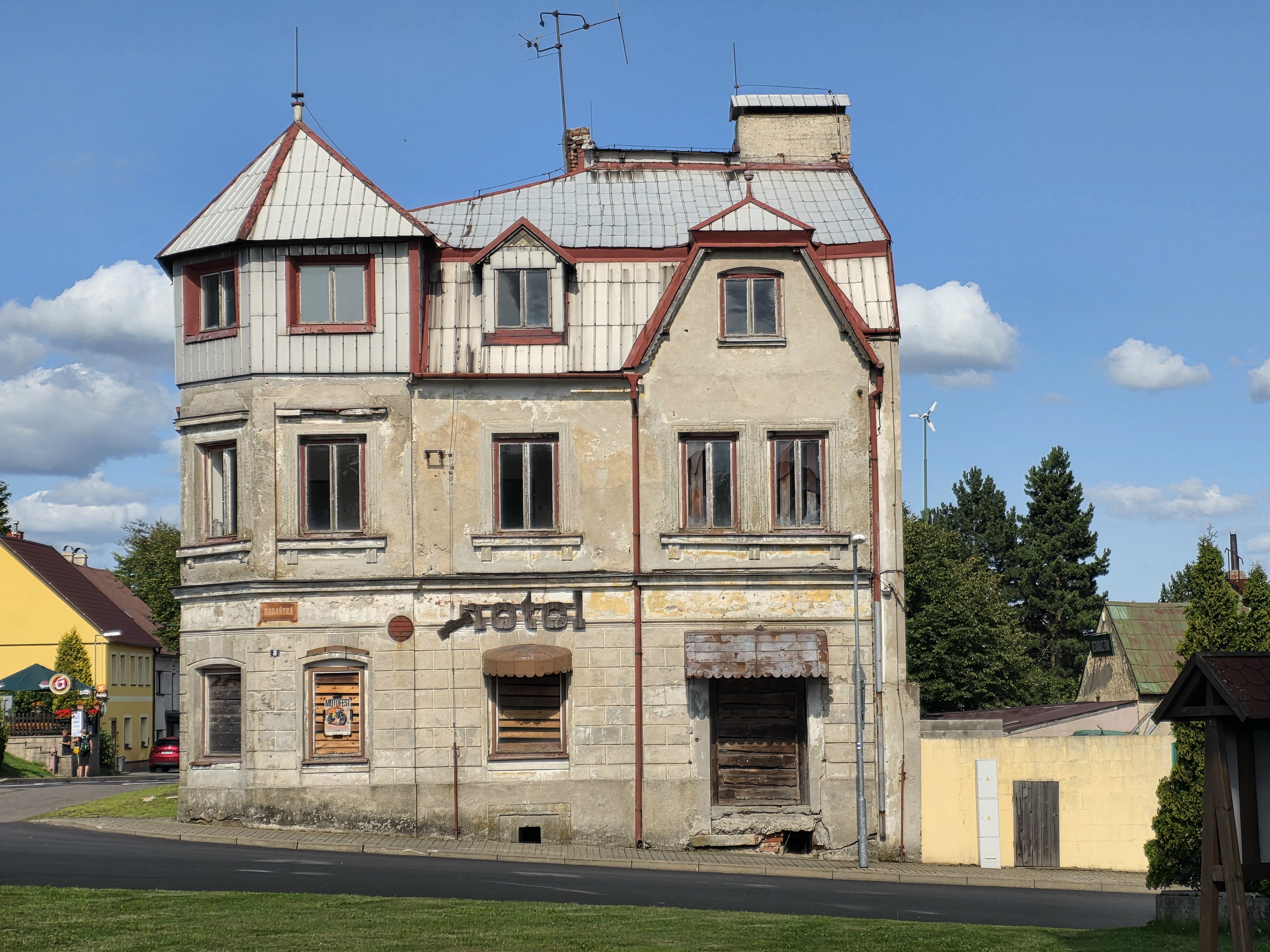 Het plaatselijke hotel (of een van de plaatselijke hotels?) ziet eruit alsof de laatste gast hier in de tijd van Karl May heeft gelogeerd.