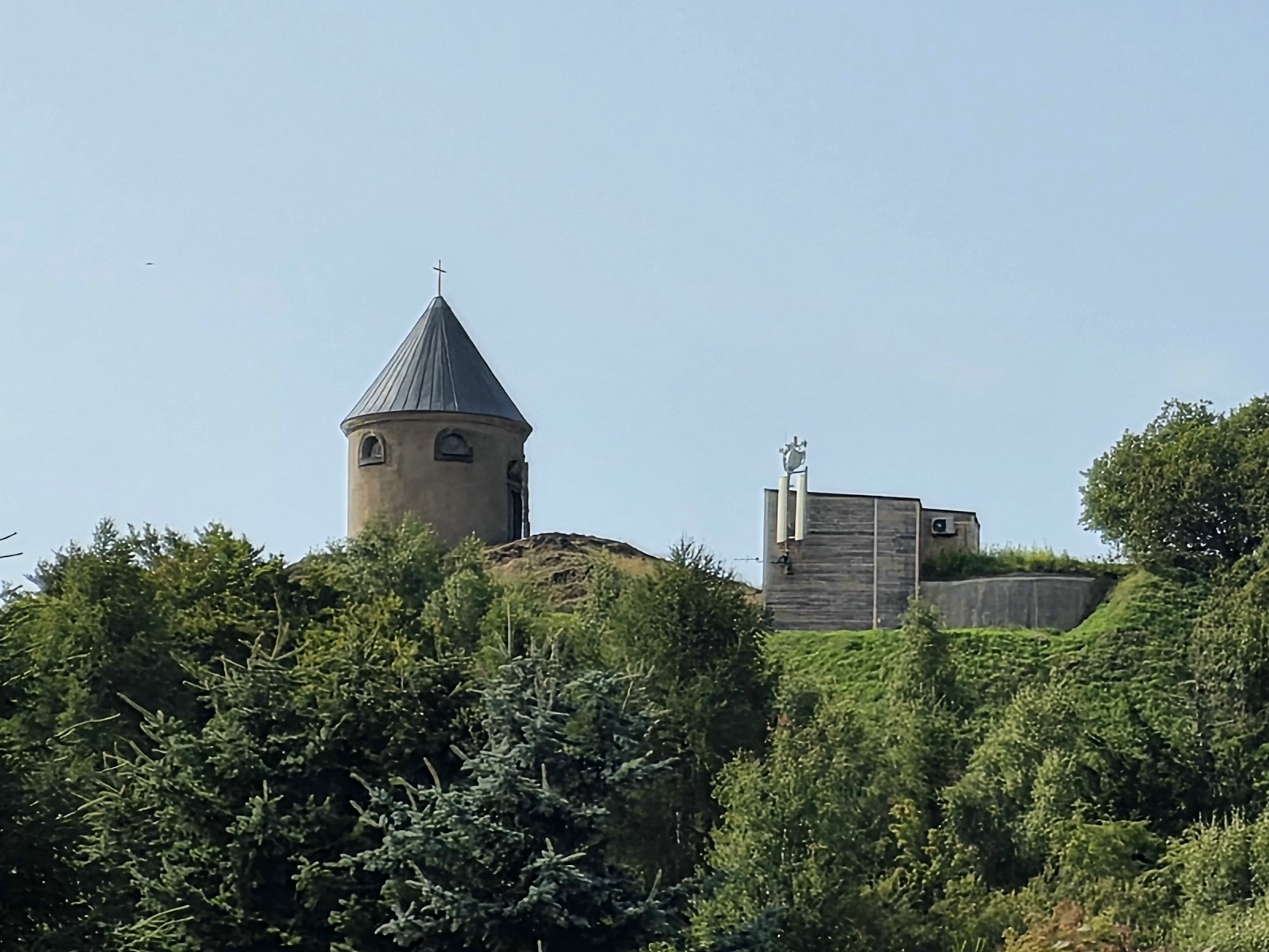 Kupferberg (Měděnec): In 1939 woonden er 1137 mensen in Kupferberg, in 1947 waren dat er nog maar 202. Door het aantrekken van Slowaken en Tsjechen uit andere delen van het land plus een handjevol zigeuners liep het aantal inwoners tot 1950 weer iets op tot 291, maar nu wonen er dus nog maar 150 mensen in het dorp. Interessanter dan het dorp zelf is daarom de 910 meter hoge Kupferhübel (Mědník), waar een kapel staat ook de klim naar boven en het uitzicht zijn de moeite waard, dus het ligt voor de hand dat ook de Mays naar boven zijn geklommen. © foto 2025 |