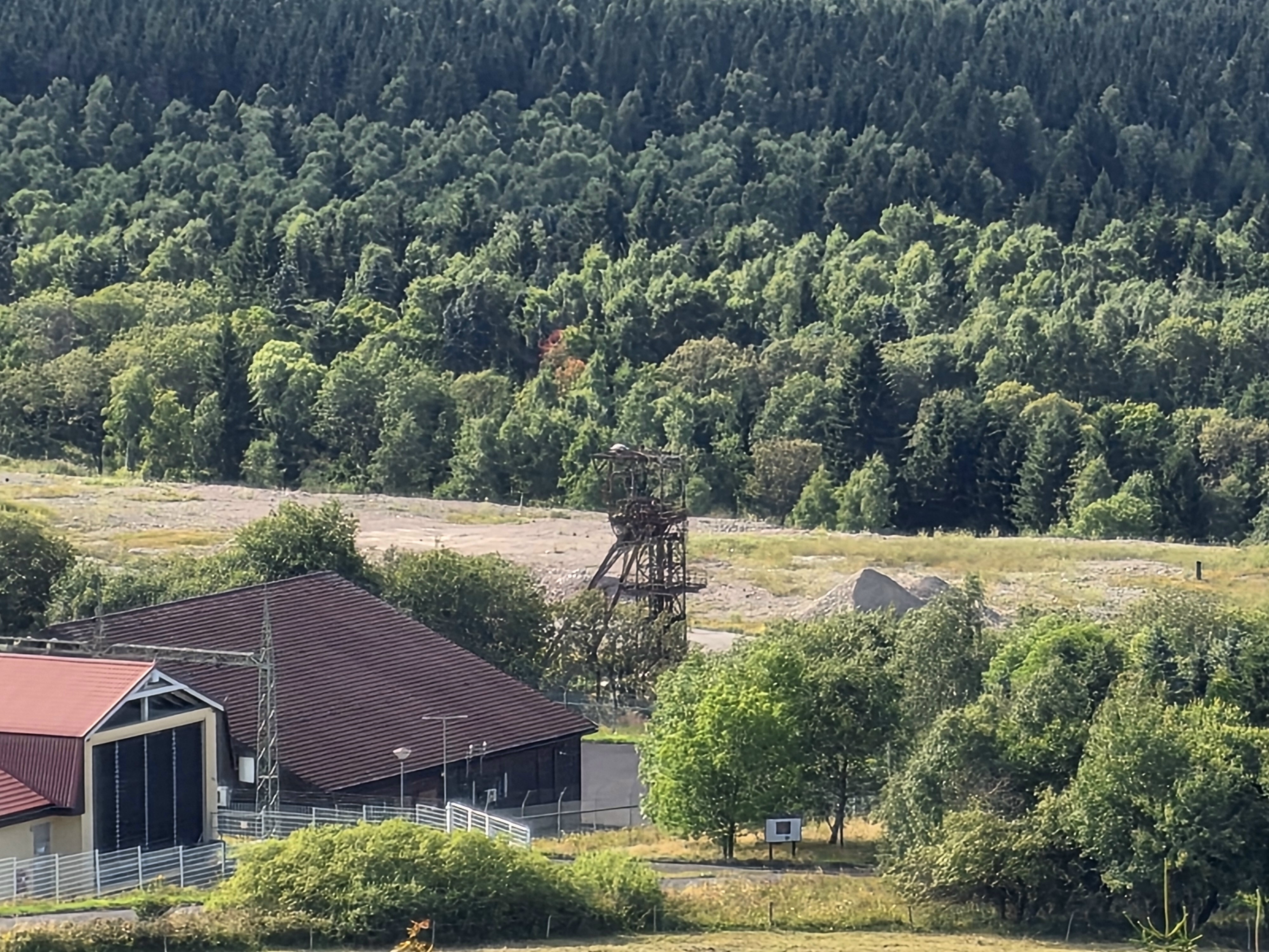 Kupferberg (Měděnec): In de Kupferhübel (Mědník) bevonden zich ooit meer dan tachtig mijnschachten, waarvan de resten in de vorm van geblokkeerde monden en stortplaatsen voornamelijk bewaard zijn gebleven op de noordoostelijke en oostelijke hellingen van de heuvel. Andere mijnen bevonden zich richting Oberhals (Horní Halže), Unterhals (Dolní Halže), Orpus (Mezilesí) en Preßnitz (Přísečnice), waar ijzererts werd gewonnen. Een van de belangrijkste mijnen in dit gebied was de Rothsudelzech-mijn ⚒, waar tussen 1799 en 1845 jaarlijks gemiddeld 180 tot 300 ton hematiet (Fe2O3) werd gewonnen. Deze mijn lag ten noordwesten van het dorp en had een 410 meter lange drainagegang en een 27 meter diepe schacht. © foto 2025 |