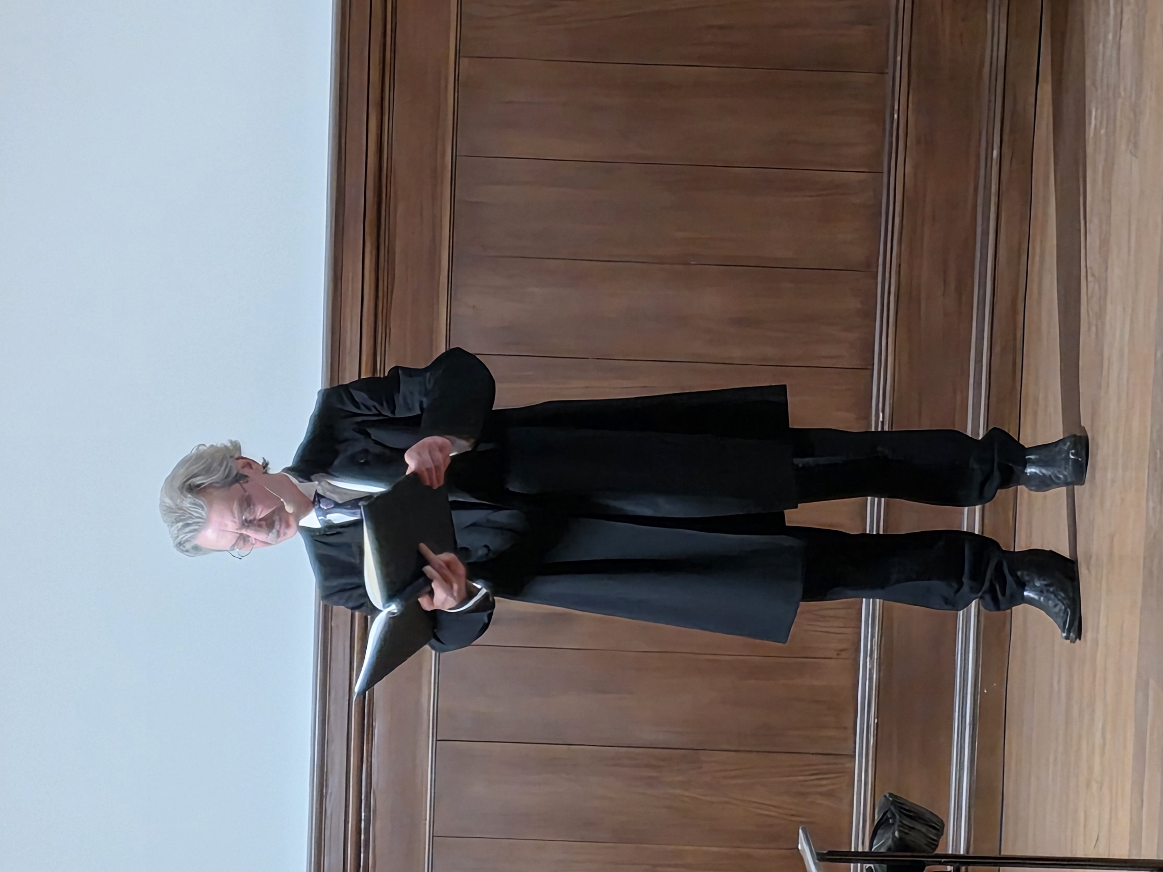 Rostock, Universitätsplatz 1: Universität Rostock: Het avondprogramma van de eerste dag van het congres (2 oktober 2025) werd verzorgd door Robby Langer (* 1961) en Roland Wichmann (* 1968), die een theaterstukje maakten van de correspondentie tussen Karl May en Sascha Schneider (voluit: Rudolph Karl Alexander Schneider, * 21 september 1870, 18 augustus 1927). Hier zien we Robby Langer in de rol van Karl May. © foto 2025 |