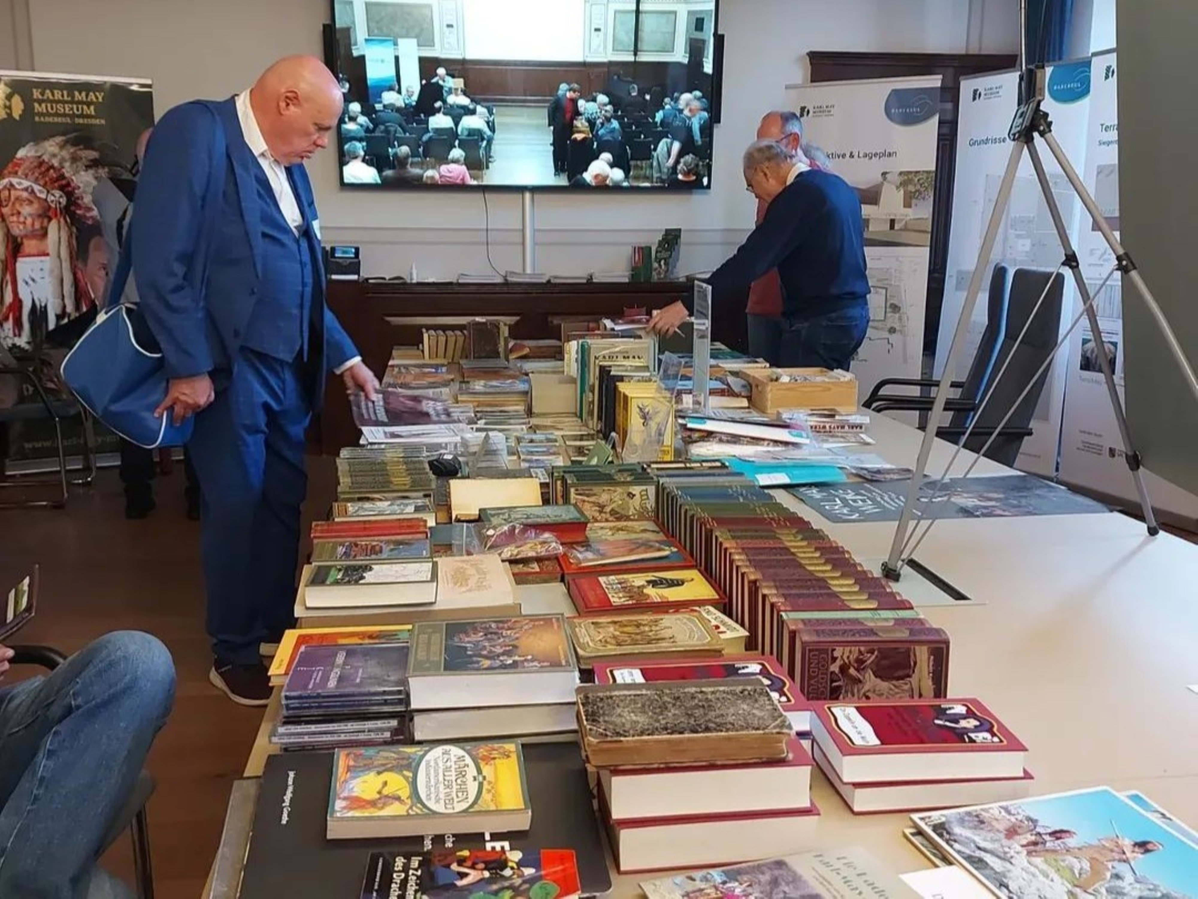 In de pauzes tussen de lezingen was er steeds weer gelegenheid om de boekenvoorraad aan te vullen.