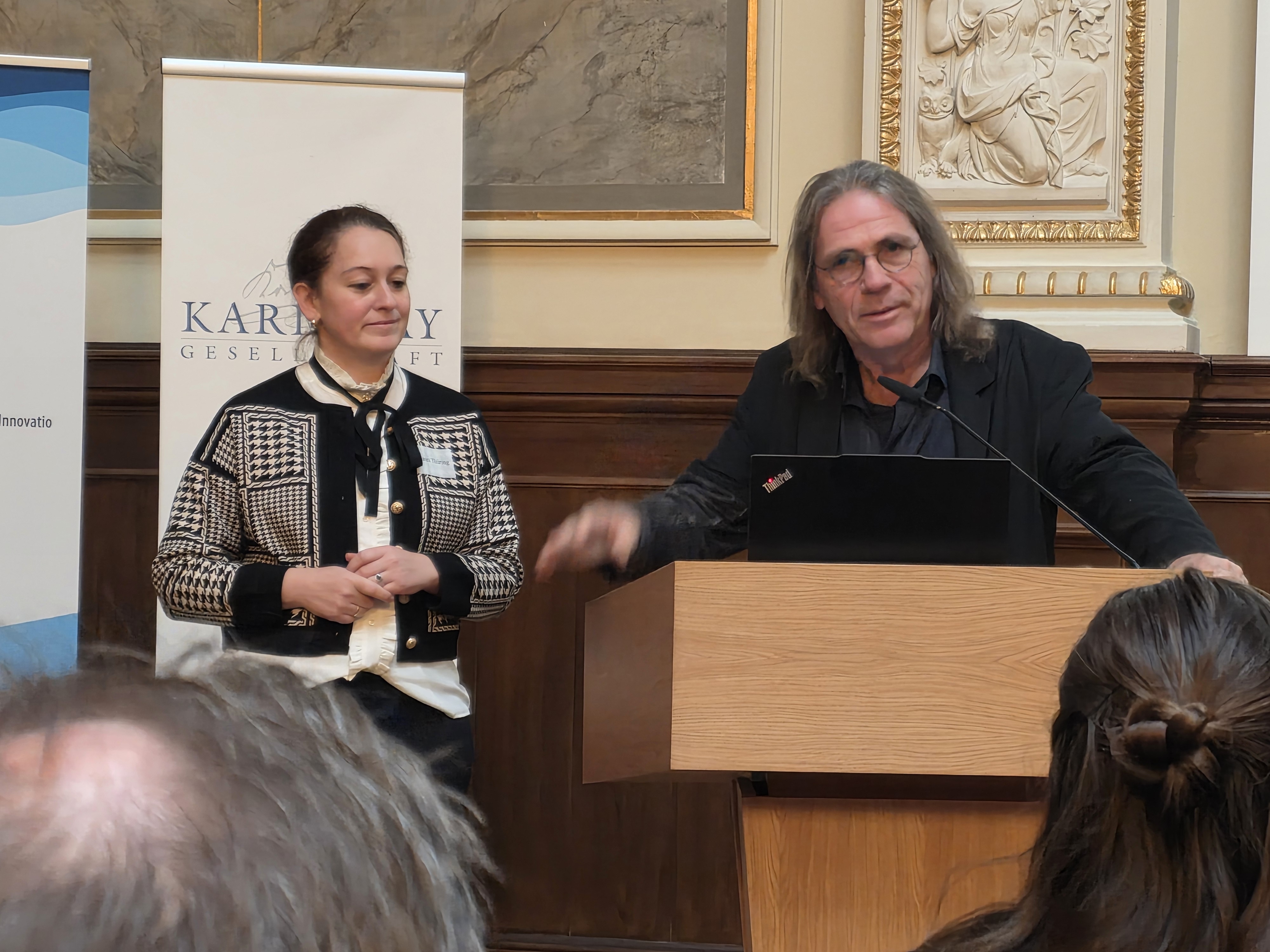 Rostock, Universitätsplatz 1: Universität Rostock: Prof. Dr. Andreas Brenne (* 18 juli 1966; hoogleraar voor kunstpedagogiek en kunstdidactiek aan de universiteit van Potsdam) deelt mede dat hij en andere auteurs hun boek »Winnetou. Karl May in kritischen Zeiten« in de volgende pauze zullen signeren. © foto 2025 |