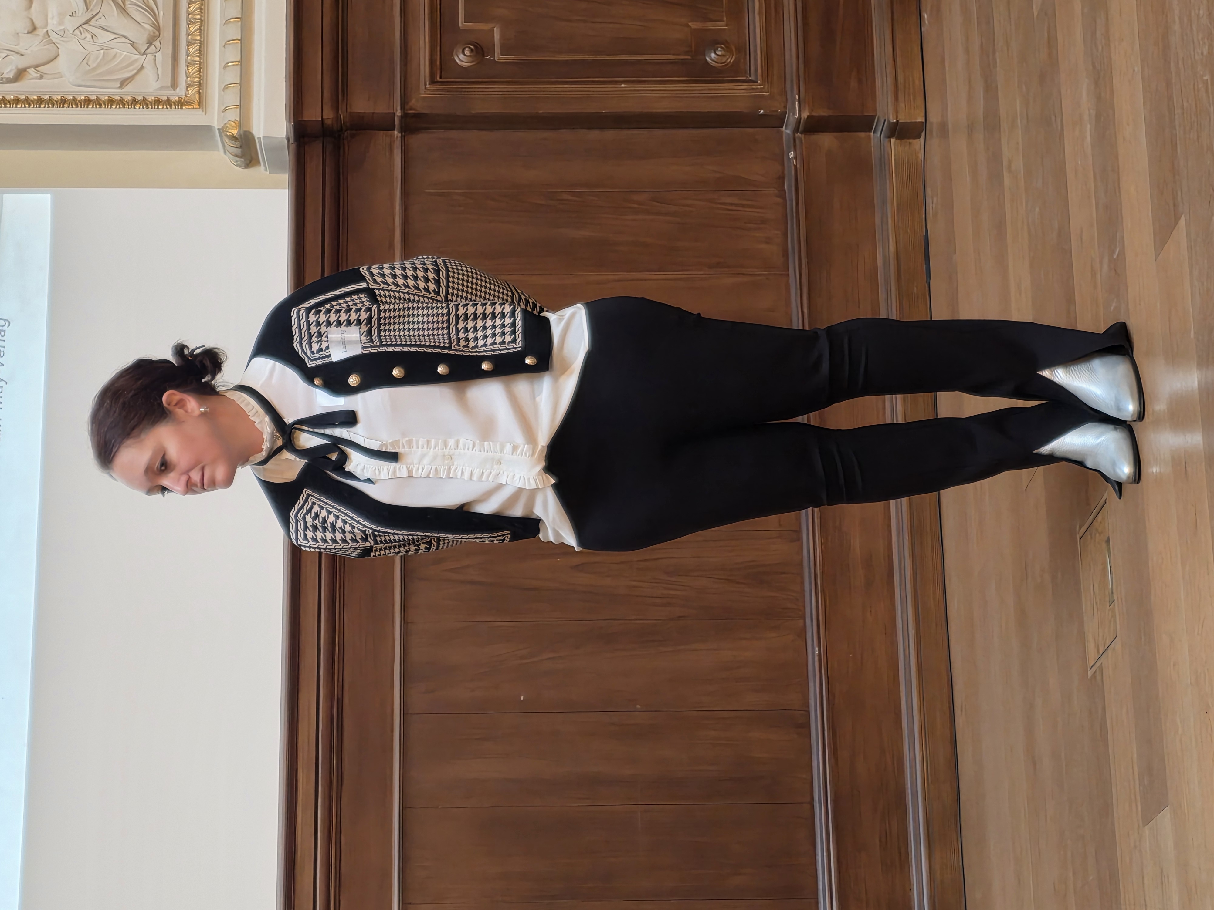Laura Thüring M.A. (* ?), wetenschappelijk medewerkster van de Karl-May-Gesellschaft met haar prachtige zilveren laarsjes kondigt aan dat er deze tweede dag van het congres nog drie lezingen en een boekenveiling op het programma staan.