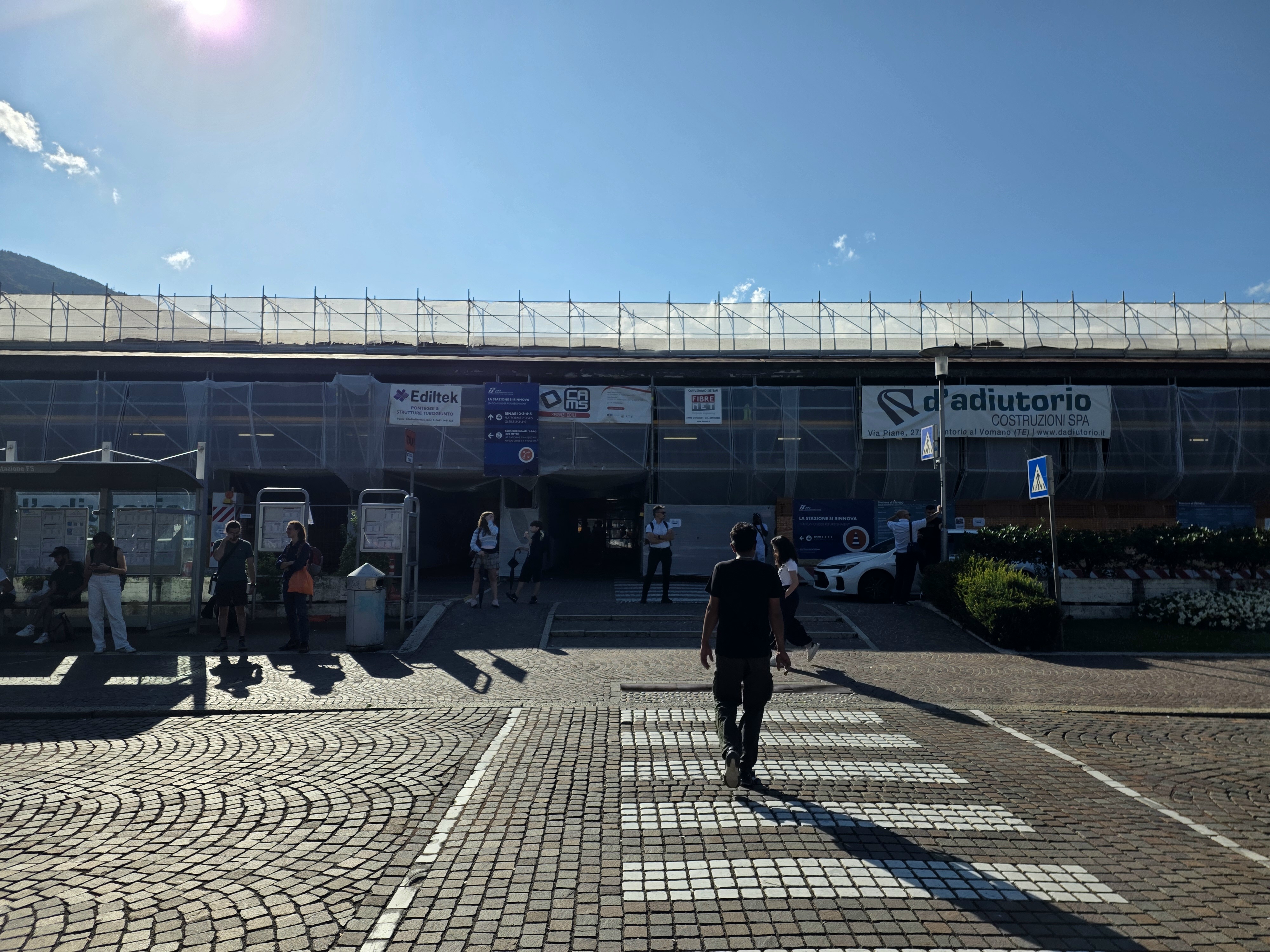 Trente (Trento), Piazza Dante: Het station - een naoorlogse herbouw, die nu alweer dringend renovatie behoeft - heeft Karl May minstens 6x bezocht: bij zijn aankomst vanuit Bozen (Bolzano) op maandag 13 oktober 1902, op weg naar Riva; op zaterdag 15 november 1902, tijdens een dagtochtje naar Trente vanuit Riva (en weer terug natuurlijk), op zaterdag 6 december 1902, bij een tweede uitstapje naar Trente vanuit Riva (ook ook nu weer terug) en op maandag 15 december, op weg van Riva naar huis. © foto 2025 |