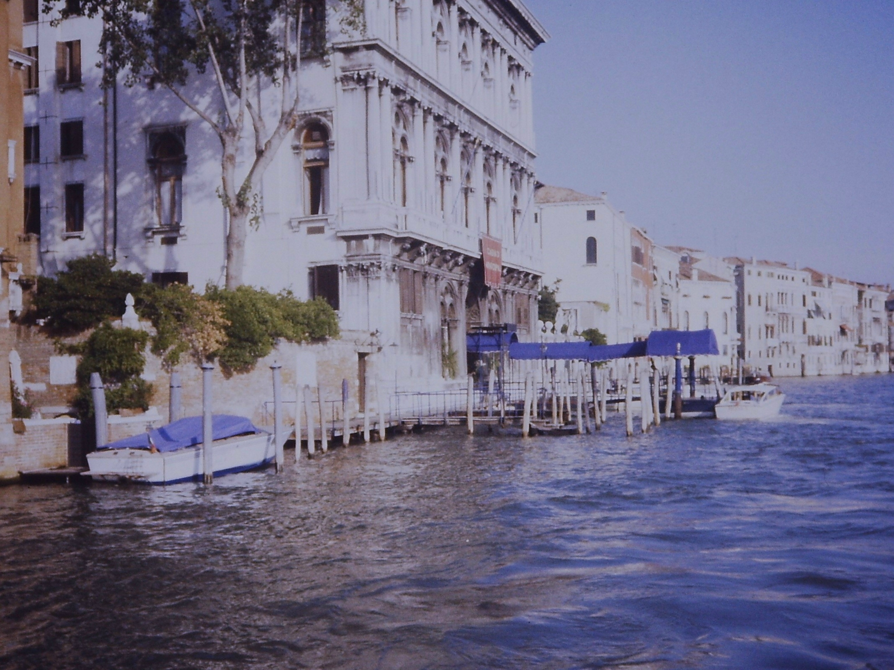 Venetië (Venezia), Canal Grande: Uit zijn reisdagboek is af te leiden dat Karl May vermoedelijk meteen al op de eerste dag, 21 juli 1900 dus, de woning van Richard Wagner (* 22 mei 1813, 13 februari 1883) opzoekt. Die had vanaf de herfst van 1882 een aantal kamers gehuurd in het hier afgebeelde Ca (Venetiaans voor Palazzo) Vendramin-Calergi, gebouwd van 1481 tot 1509 door architect Mauro Codussi (* ± 1440, 1504). © foto 1997 |