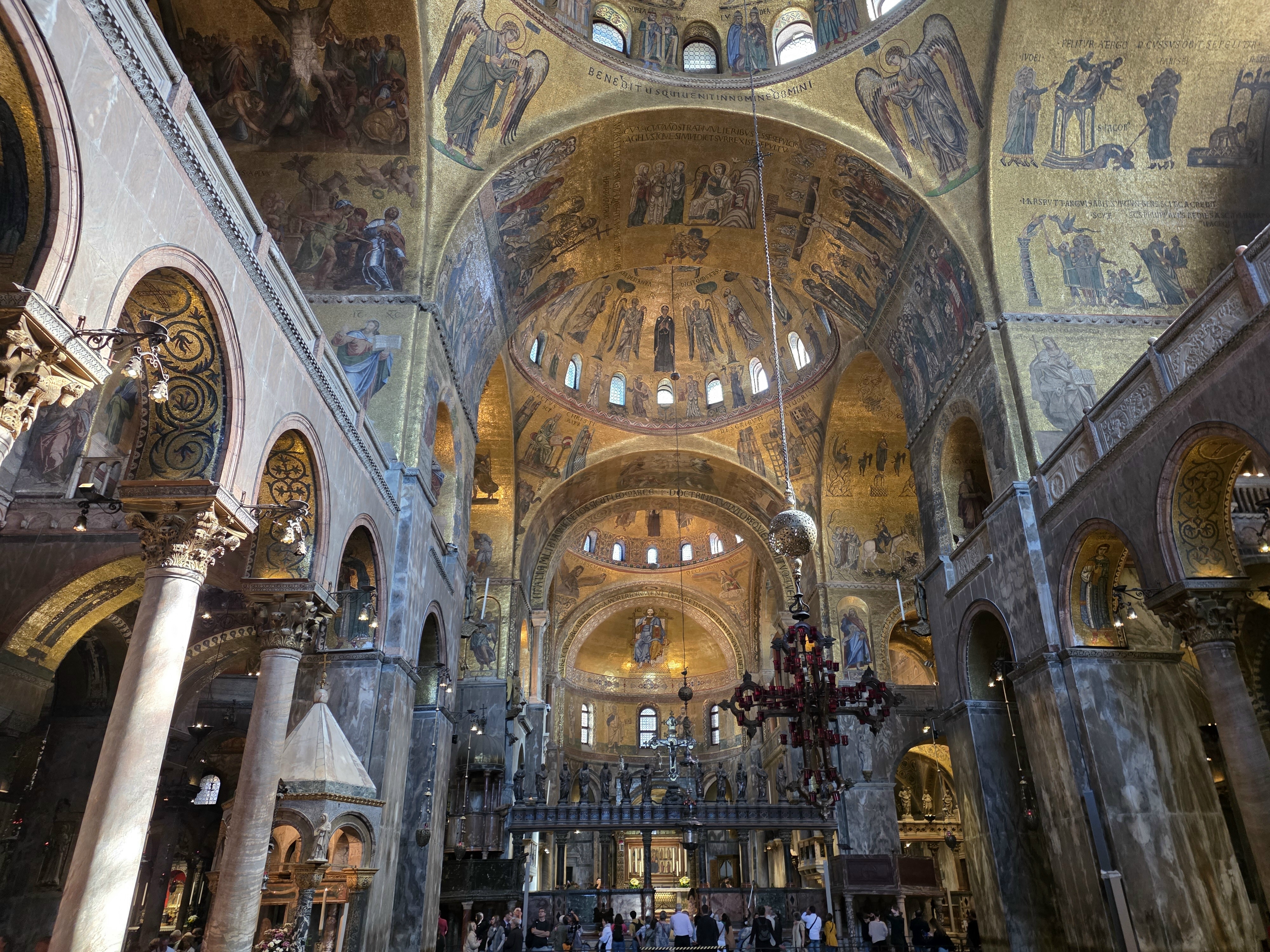 Venetië (Venezia), Piazza San Marco 1: Basilica di San Marco ✞ : In 976 werden de kerk en 200 omliggende huizen vernietigd door een door opstandelingen in het Dogenpaleis gelegd vuur. Nog in datzelfde jaar liet Pietro I. Orseolo (* 928, 10 januari 987 oder 988; van 12 augustus 976 tot 31 augustus 978 de 23e doge van Venetië) de kerk herbouwen. De basiliek die er nu staat, is al de derde op deze plek; ze werd tussen 1063 en 1094 gebouwd onder Domenico Contarini (* ?, 1071; van april 1041 tot januari 1071 de 30e doge van Venetië). Op 25 juni 1094 werden de stoffelijke resten van de Heilige Marcus als door een wonder teruggevonden, die sinds de brand van 976 als verloren beschouwd waren. © foto 2025 |