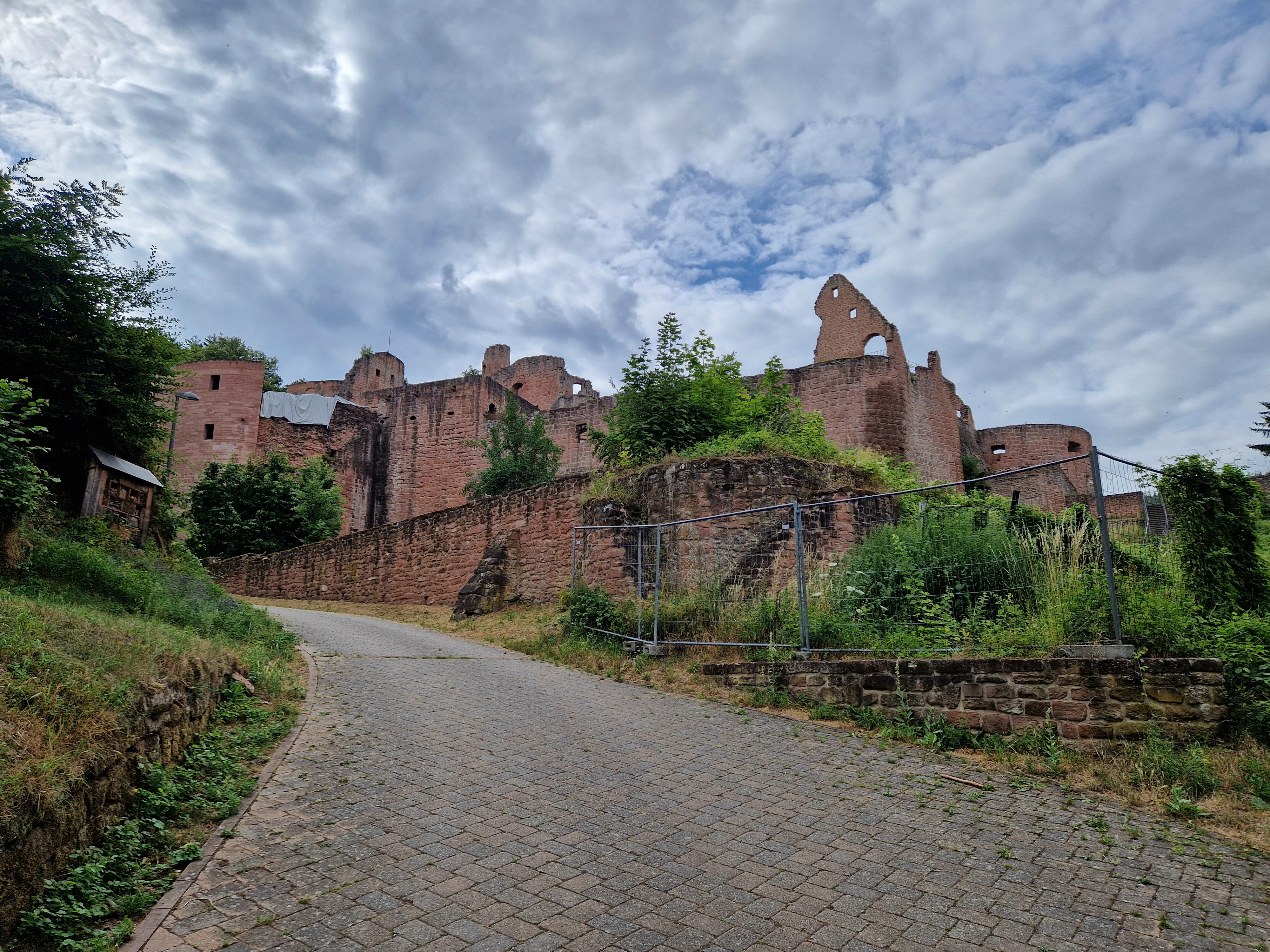 Bad Dürkheim, Kaiserslauterer Straße 393: Schloss- und Festungsruine Hardenburg: Van 10 mei t/m 15 juli 1897 maakten Karl en Emma May een reis door Duitsland en Oostenrijk, waarbij ze o.a. Wernigerode, Hamburg, Helgoland, Wiesbaden, Mainz, Bonn, Königswinter, Deidesheim, Stuttgart, Friedrichshafen, Lindau, Innsbruck, de Achensee, Starnberg, München, Regensburg, Eger (het huidige Cheb) en Komotau (het huidige Chomotuv) aandeden. Op 17 juni van dat jaar reisden ze van Stuttgart via Deidesheim naar (Bad) Dürkheim, waar ze de ruïne Hardenburg bezochten; vandaar reisden ze terug naar Deidesheim. © foto 2025 |
