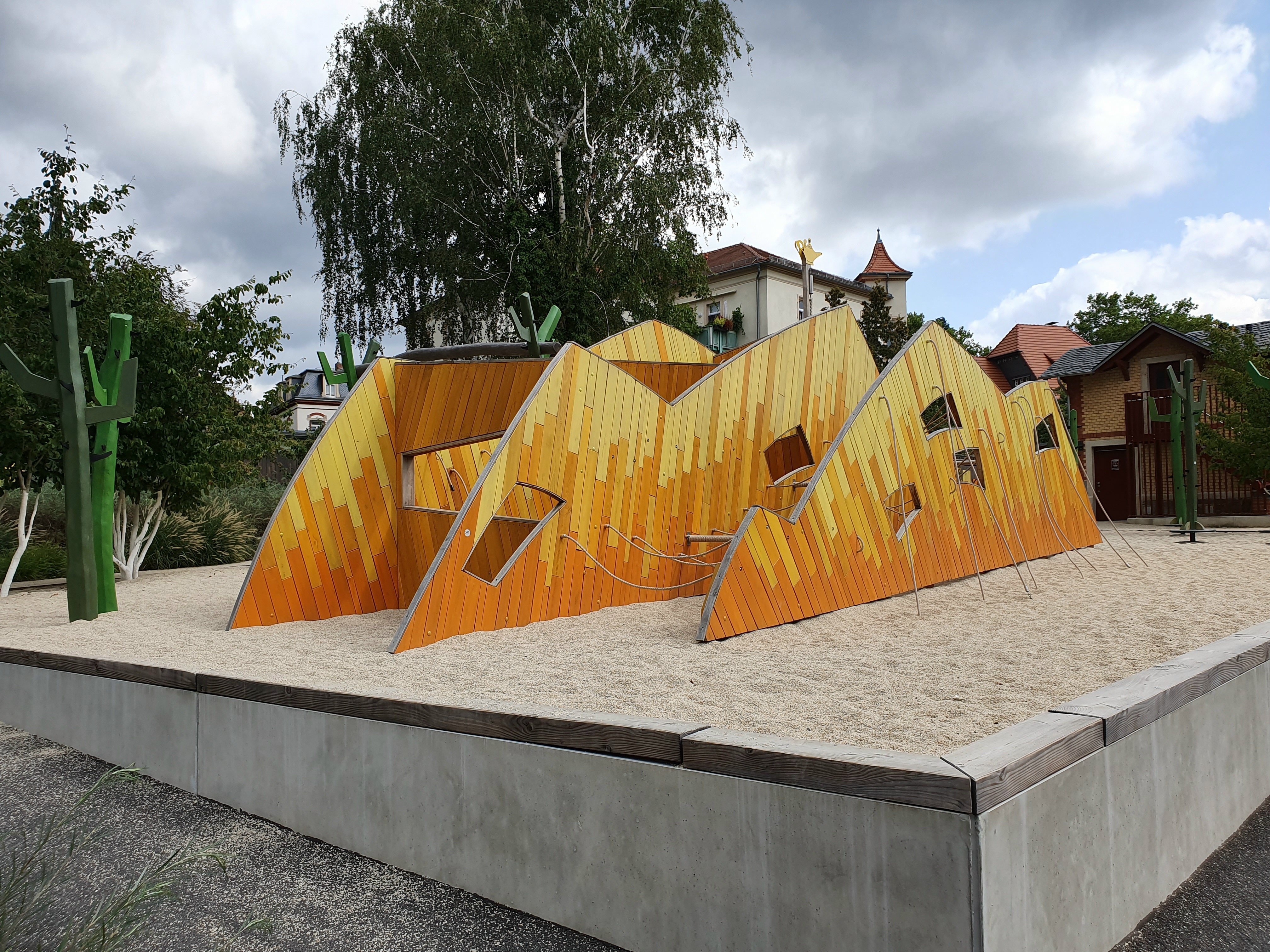Talloze klimtoestellen moeten de kinderen zelf, zonder allerlei technische hulpmiddelen, plezier laten krijgen in het zelf klimmen, zoeken en verstoppen ...