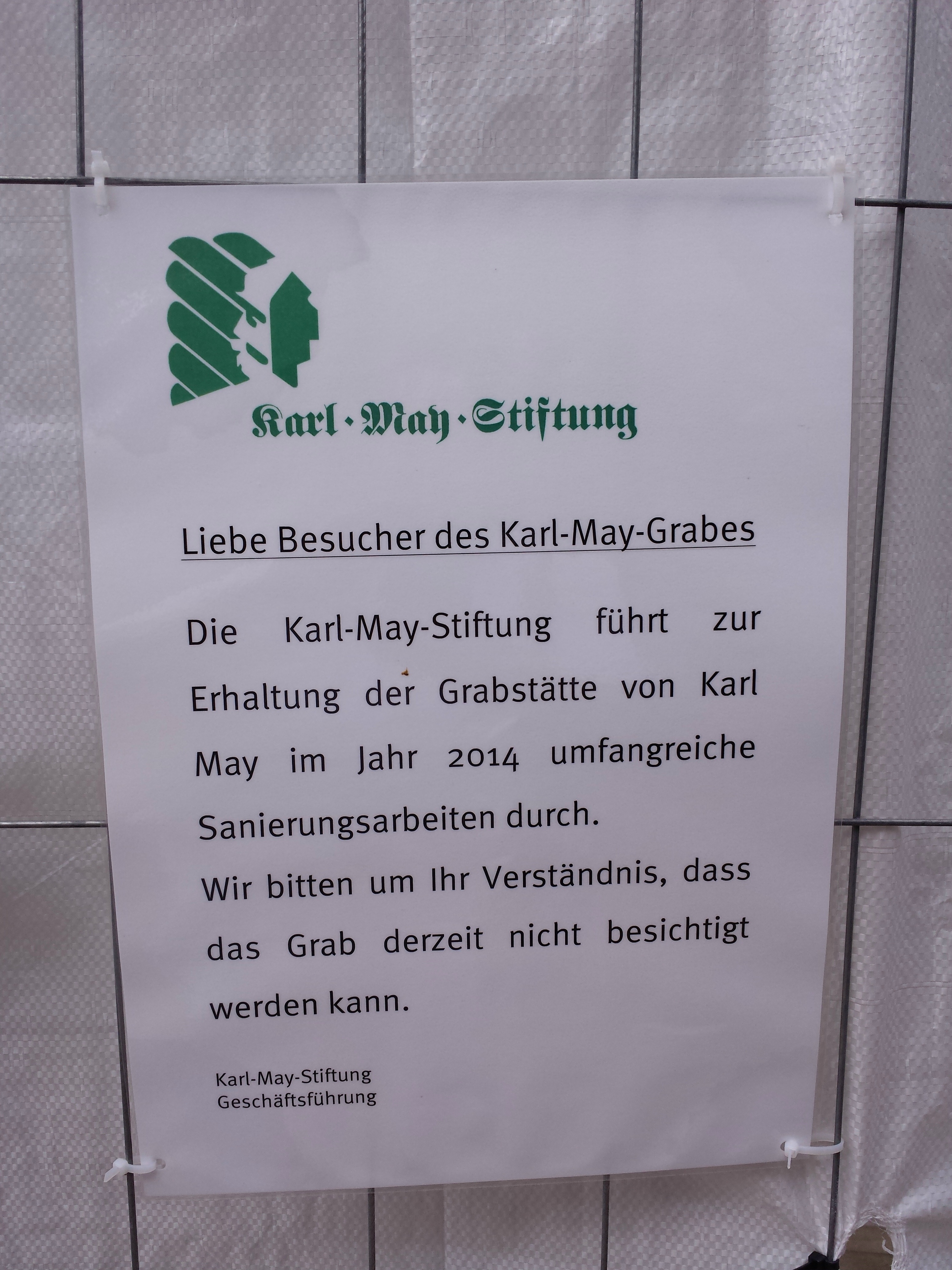 En ziedaar ... een jaar later is het graf van Karl May inderdaad gesloten wegens restauratie.