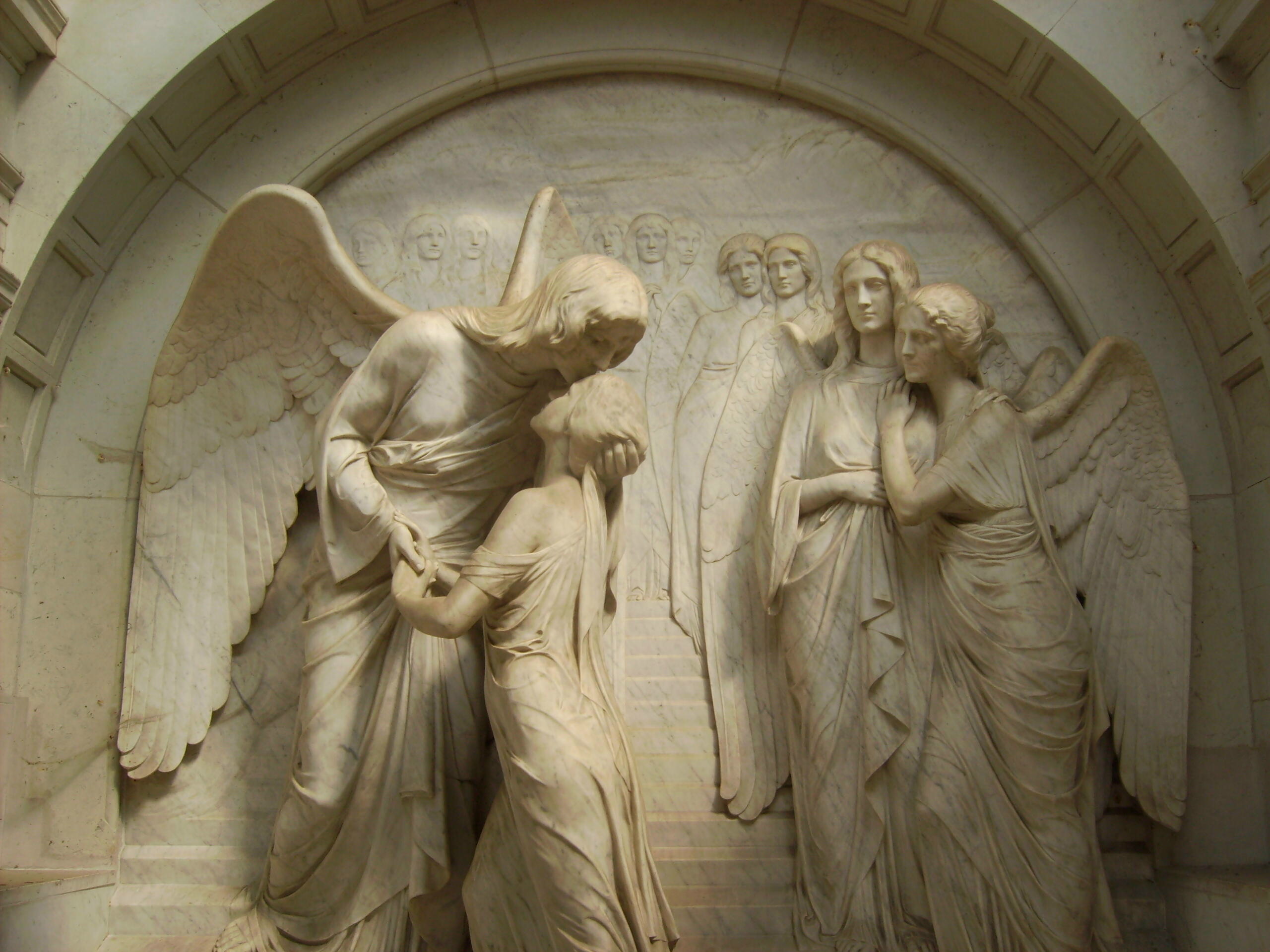 Radebeul, Friedhofstraße/ Serkowitzer Straße 33: Friedhof Radebeul Ost: Het reliëf »Engel empfangen eine irdische Seele« is gemaakt door Mays vriend Prof. Selmar Werner (* 12 december 1864, 19 augustus 1953), die o.a. ook een Karl-May-buste in Villa Shatterhand en het Schillermonument op de Albertplatz in Dresden heeft ontworpen. © foto 2007 |