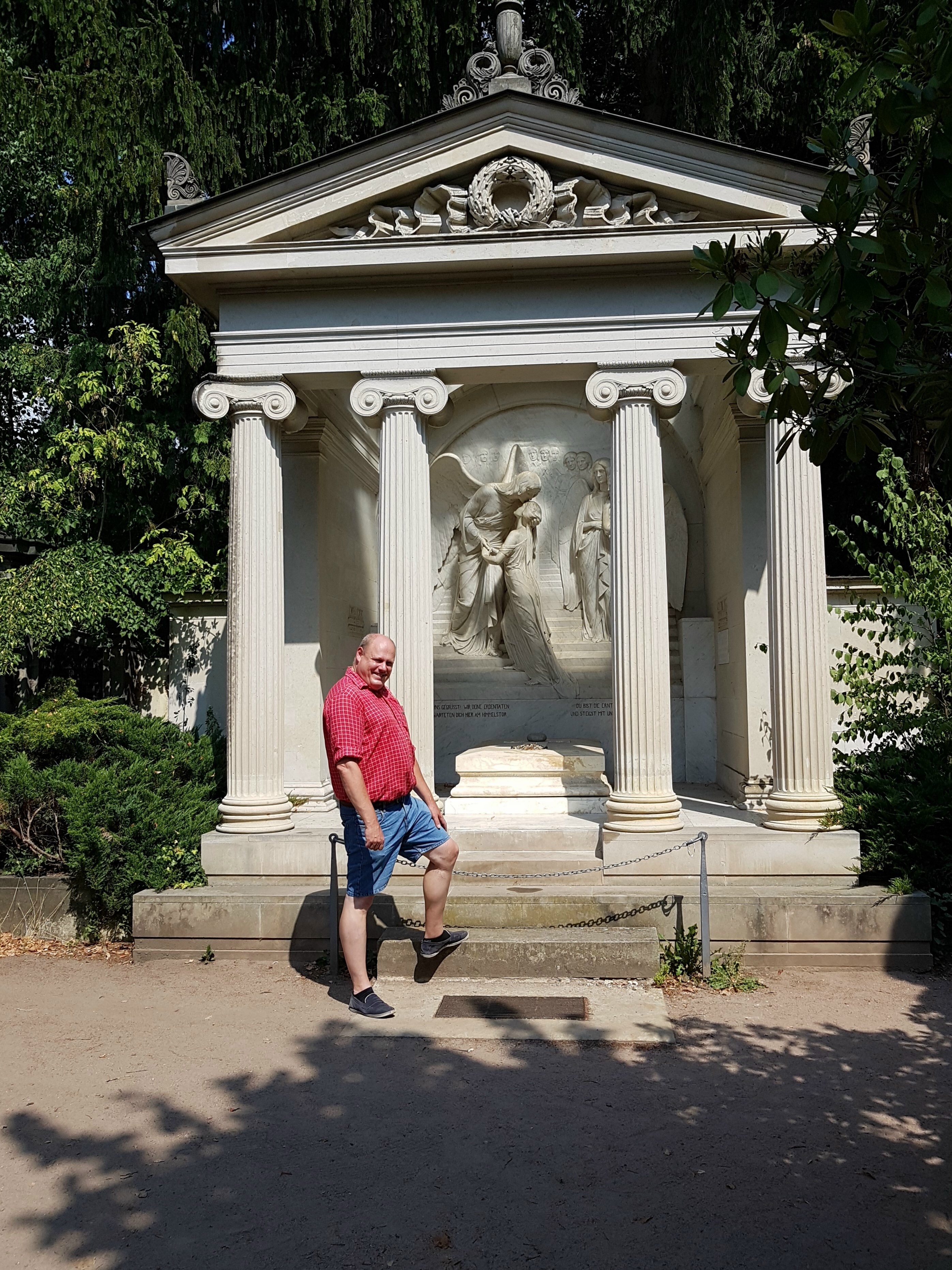 -fan een paar jaar en een paar kilo later voor het graf van Karl May.