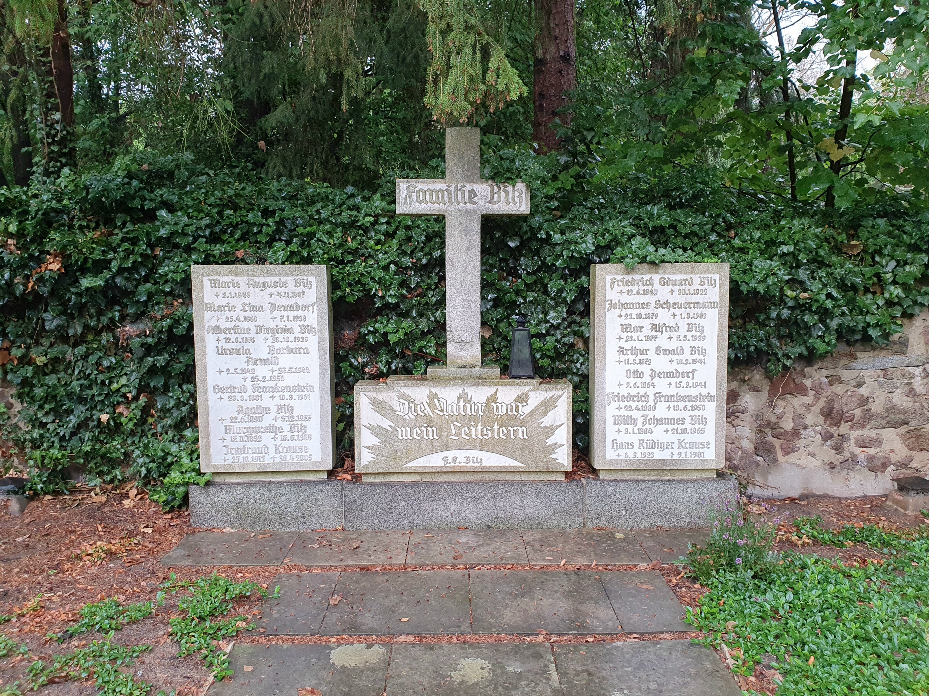 Radebeul, Friedhofstraße/ Serkowitzer Straße 33: Friedhof Radebeul Ost: Naast Karl May liggen zijn vriend Friedrich Eduard Bilz (* 12 juni 1842, 30 januari 1922) en diens familie. Inmiddels is ook dit graf schoongemaakt, zodat Bilz grafspreuk Die Natur war mein Leitstern weer leesbaar is. © foto 2020 |