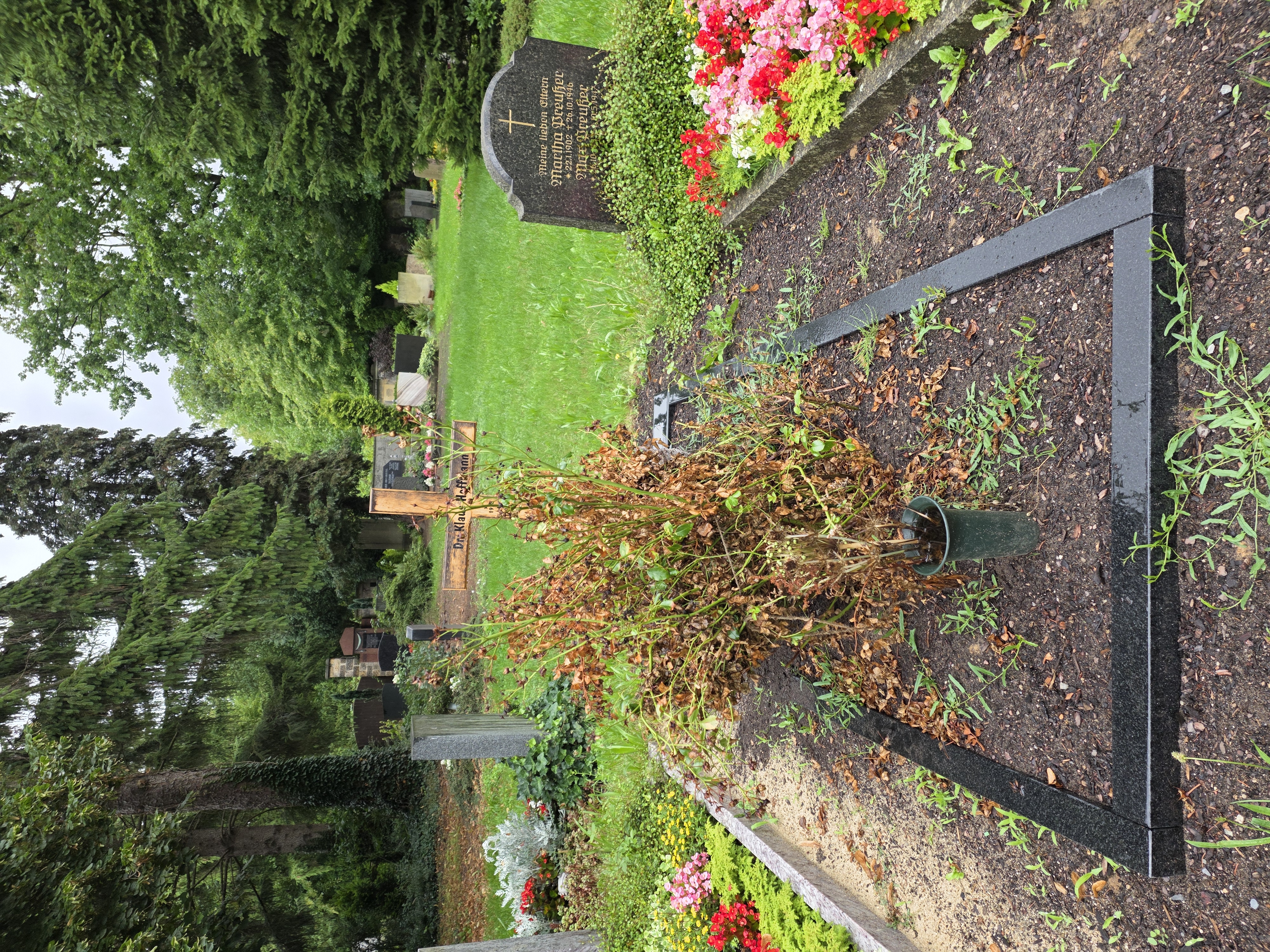 Radebeul, Friedhofstraße/ Serkowitzer Straße 33: Friedhof Radebeul Ost: Een jaar later zijn er alvast zwarte marmeren banden rondom het graf van Dr. rer. nat. Klaus Hoffmann (* 3 december 1938, 26 februari 2023) geplaatst, maar aan de staat van de planten te zien heeft sinds de dood van de auteur van o.a. het controversiële »Karl Mays Werke. Textgeschichte, Textbearbeitung, Textkritik« niemand naar het graf omgekeken. Het ziet ernaar uit dat uw webmaster in 2026 diep in de buidel zal moeten tasten om ook dit graf van een vers plantje te voorzien. © foto 2025 |