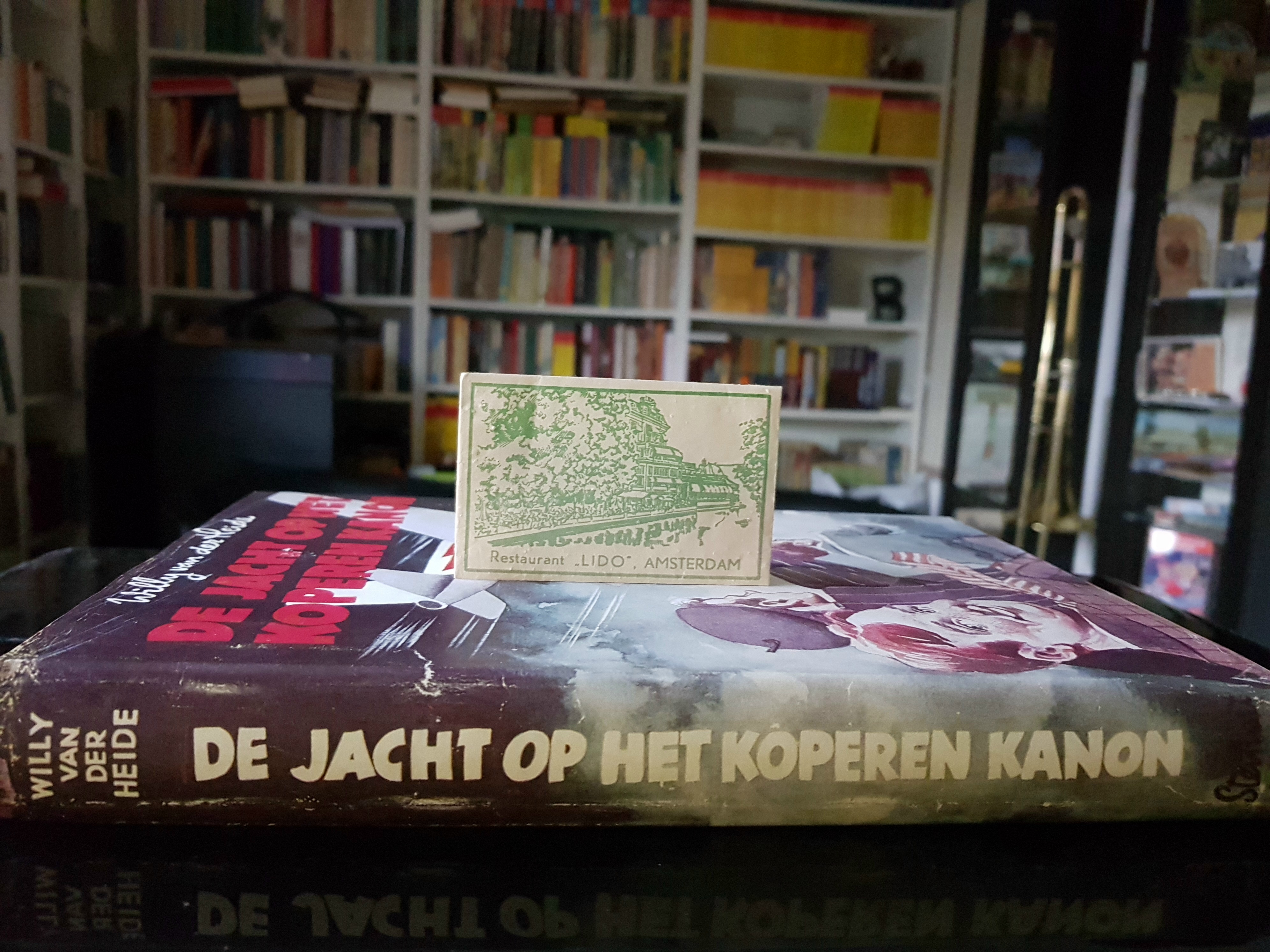 Deel 2 (pocket BE5), pagina 107-8: Prins had een keurige kamer met een tweepersoonsbed en een dik tapijt. Hij begon met het raam wijd open te zetten en keek uit over het Leidsebosje, de vele lichten van het Leidseplein en de mensen aan de overkant van het water op het terras van Lido. Als hij zich vooroverboog kon hij, beneden zich, langs het trottoir, zijn taxi zien, die braaf wachtte. Suikerzakje van Lido. |