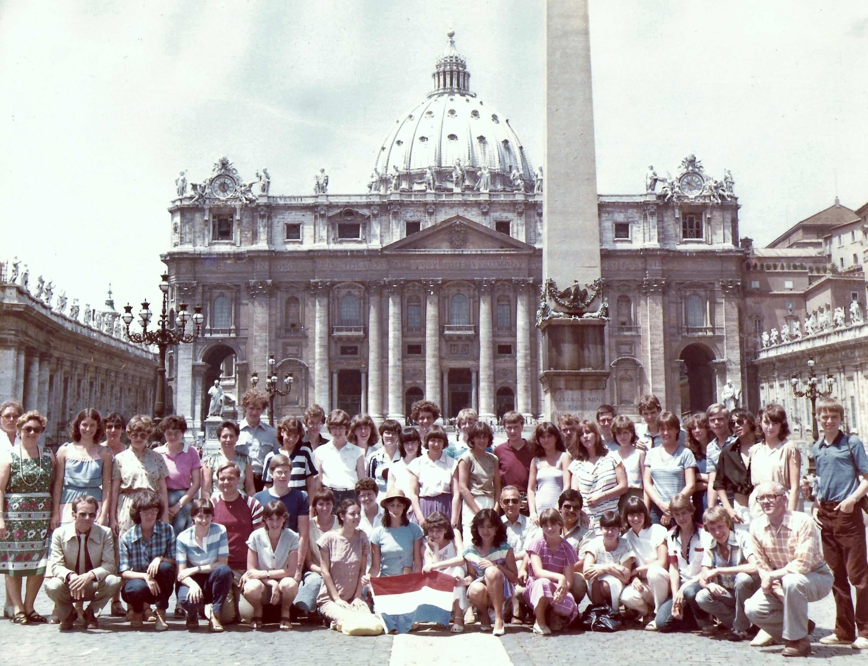 De groepsfoto kon gelukkig wel gemaakt worden door een zeer ouderwetse Italiaanse fotograaf met een zeer ouderwetse grote camera met een zwarte doek eroverheen, zoals je eerder in 1881 dan in 1981 zou verwachten.