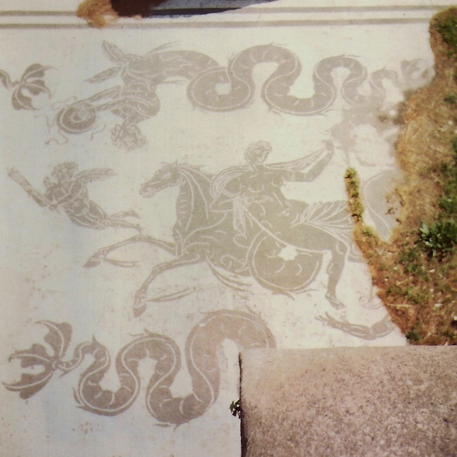Na de San Paolo fuori le Mura, die op de Via Ostiense ligt, gingen wij verder naar Ostia Antica en daarna naar Ostia Lido. Een mooi programma dat ik heb overgenomen als ik met mijn leerlingen in Rome was, ben en zal zijn: beter goed gejat dan slecht bedacht, nietwaar? We zien hier een van de beroemde mozaïeken in de Thermen van Neptunus in het oude Ostia. © foto Roger Schenk |
