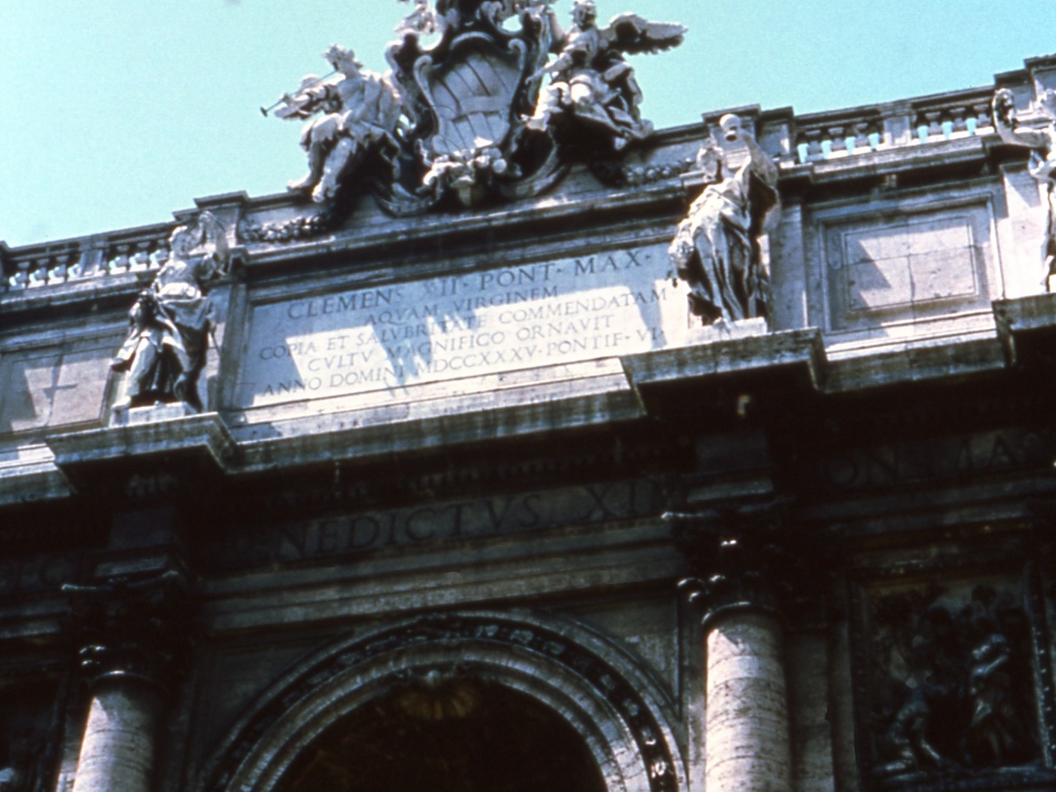 De Fontana di Trevi (Trevifontein), waar je met je rechterhand een muntje over je linker schouder moet gooien, hetgeen een garantie is voor het feit dat je ooit in Rome zult terugkeren. Bijgeloof of niet, maar het is en blijft een feit dat ik elke keer een muntje heb gegooid en inderdaad ook elke keer terugkeer naar de Eeuwige Stad 🛫 Aan de inscriptie is te zien dat paus Clemens XII de fontein heeft laten bouwen. © foto Brigitta Maassen |