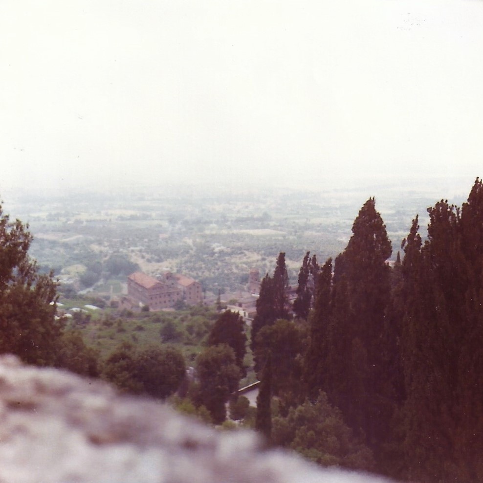 ligt op een heuvel in Tivoli. Blik op de helling vanuit de beroemde tuinen.