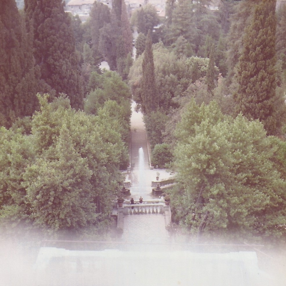 , Tivoli. De centrale as van de tuinen, gezien vanaf het bordes van de villa.