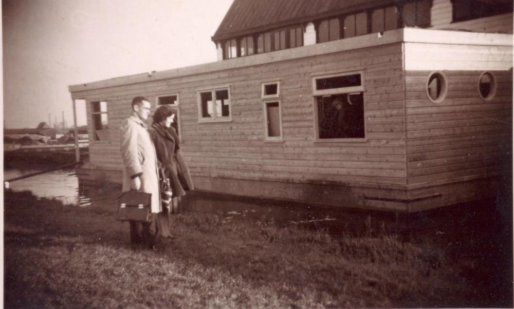 De Roussalka in aanbouw op de Bruynzeel-werf. | Met dit verhaal in het achterhoofd ben ik eens door de Haagweg in Leiden gereden. Vlak bij de brug liggen diverse woonboten en daar ben ik gestopt om te zien of er een Roussalka bij ligt. Het zal niemand verbazen dat dat niet het geval was, zodat ik een bewoner die uit een van de boten kwam aansprak met de vraag of hij iets van een Roussalka wist. Sneller raak dan dit had ik niet kunnen schieten, wat bleek, zijn eigen boot was de Roussalka!! De boot had ondertussen zijn derde opbouw, zodat van de oude Roussalka niets meer terug te vinden was. Slechts de onderbak is nog hetzelfde. De naam Van Hasselt was hem niet onbekend, hij had zon 50 jaar geleden de boot van Sjoerd gekocht, en enige jaren geleden was Sjoerd met zijn zuster nog eens op bezoek geweest. Hij is inderdaad geëmigreerd, niet naar Hawaiï maar uiteindelijk naar de Verenigde Staten. De huidige bewoner had zelfs enkele fotos van Sjoerd en van de Roussalka zoals deze er toentertijd uitgezien heeft. Hij wist echter niets van Klopjacht op een Kapitein en dat zijn eigen boot daarin figureerde!! |