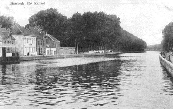 Westvaartdijk in Humbeek omstreeks 1960: | Zicht op het kanaal en de Westvaartdijk tot 1960. Het groot |