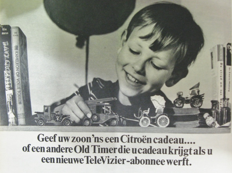 Maar u zult zich afvragen wat dit allemaal met Bob Evers te maken heeft. Een goede vraag. Televizier deed uiteraard ook aan acties om leden te werven. Zo kon het gebeuren dat je een modelauto cadeau kreeg als je een nieuw lid aanbracht. Op bovenstaande foto uit een Televizier uit 1966 zien we hoe men dit onder de aandacht bracht: een jongetje speelt vrolijk met een paar van de bedoelde modelautootjes, maar we zien ook hoe hij geflankeerd wordt door een paar rechtopstaande boeken. Zeer bekende werken: Davy Crockett, De Kameleon op volle toeren, De Zwarte Mustang van Karl May en... De strijd om het goudschip! Uiteindelijk zou Televizier een record-oplage bereiken van 800.000 stuks.