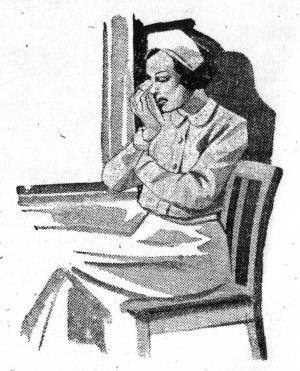 Op een stoel bij het raam zat een nurse van middelbaren leeftijd, met een verpleegstermutsje op en een wit uniform aan. Ze keek, alsof ze over een paar uur begraven zou worden.