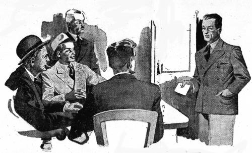 Men legde den hoorn neer, liet Johnstone gaan en keek Philip ietwat spottend aan. Philip voelde zich niet al te best. Maar hij hield onopvallend Johnstone in de gaten. Hij had gezien, dat het zweet op Johnstones voorhoofd was komen te staan, toen men den hoorn neerlegde. Philip had dat vaker opgemerkt. Er zijn menschen, die tot het uiterste toe beheerscht zijn, maar plotseling gaan transpireeren en rood worden als de spanning voorbij is.