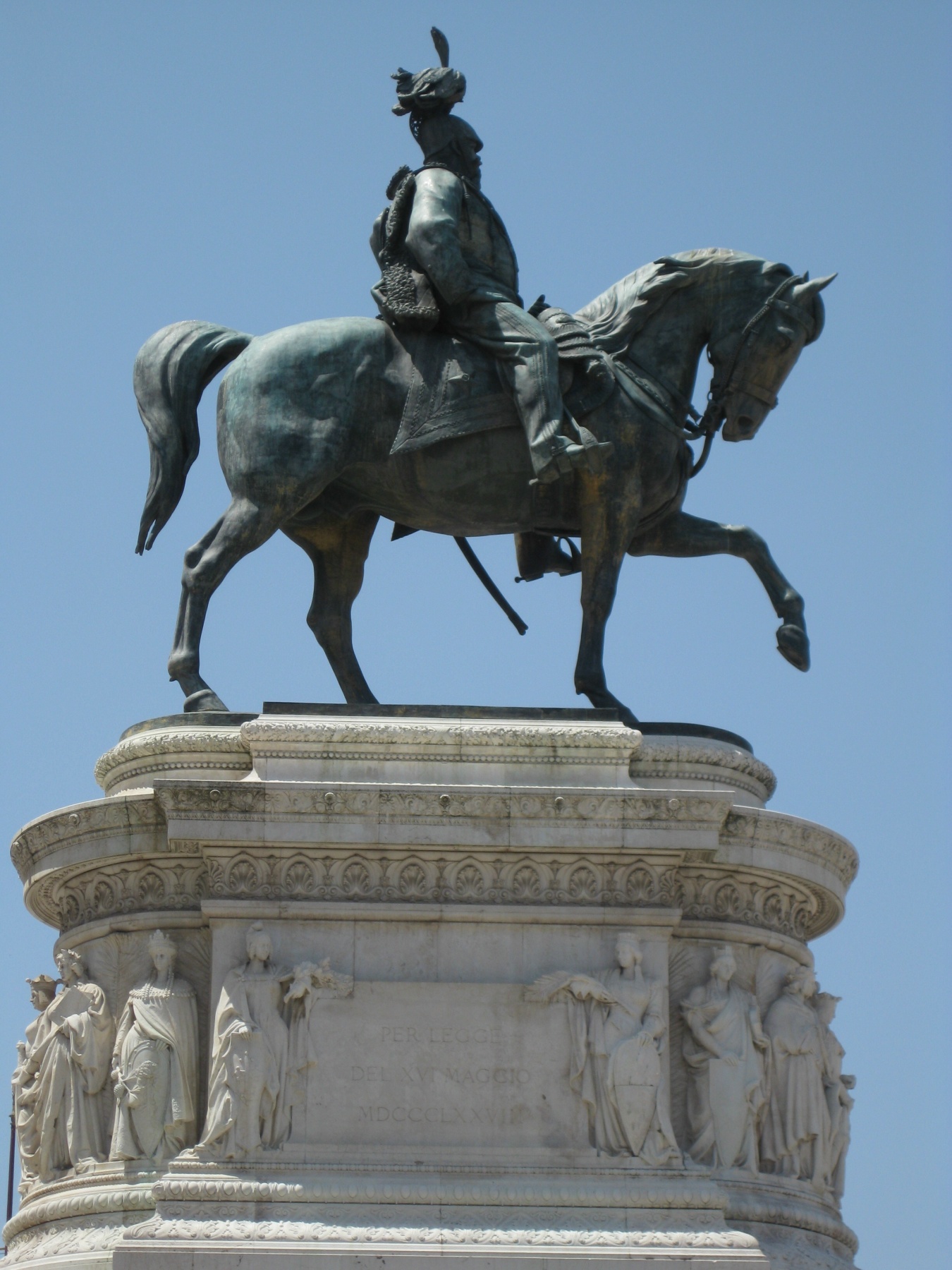 Onder het ruiterstandbeeld bevindt zich in een vergulde nis een standbeeld van Roma; aan de voet daarvan bevindt zich het graf van De onbekende soldaat, waarin de